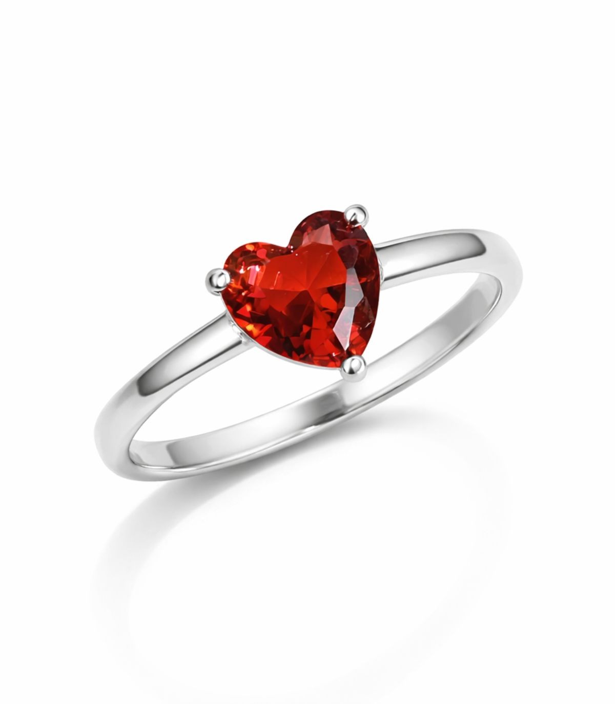 Anello donna in argento 925, con zircone rosso a forma di cuore.