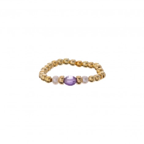 Anello elasticizzato da Donna di Alisia, modello Giselle. Realizzato in argento 925, laminato in oro giallo 18kt, con pietre e perle alternate.