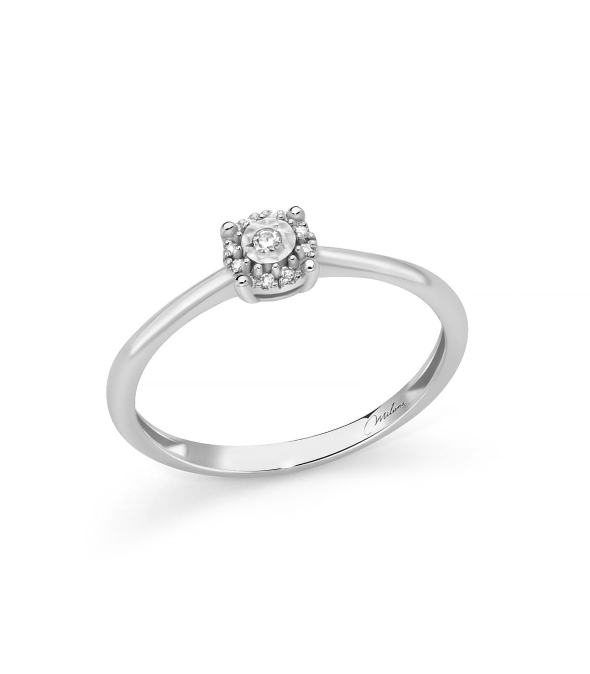 Anello della collezione Diamanti 375 di Miluna in oro bianco 9kt, impreziosito da nove diamanti colore G purezza SI