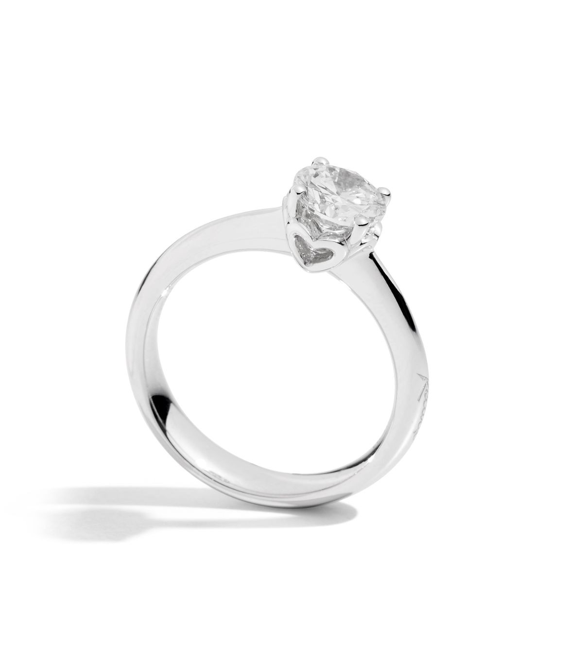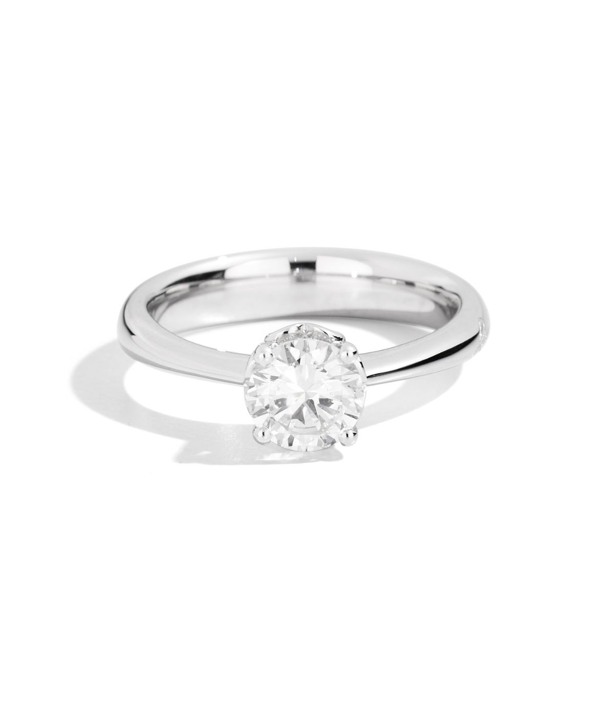 La pietra è valorizzata da una montatura a 4 griffes, pensata per esaltare la luce ad ogni movimento e rendere il solitario elegante, pulito, iconico.