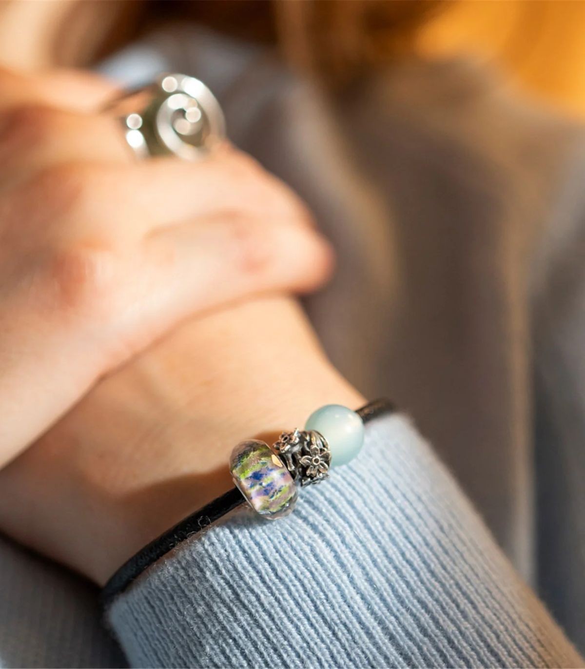 Beads Trollbeads Sussurro Di Rugiada realizzato in argento e vetro.