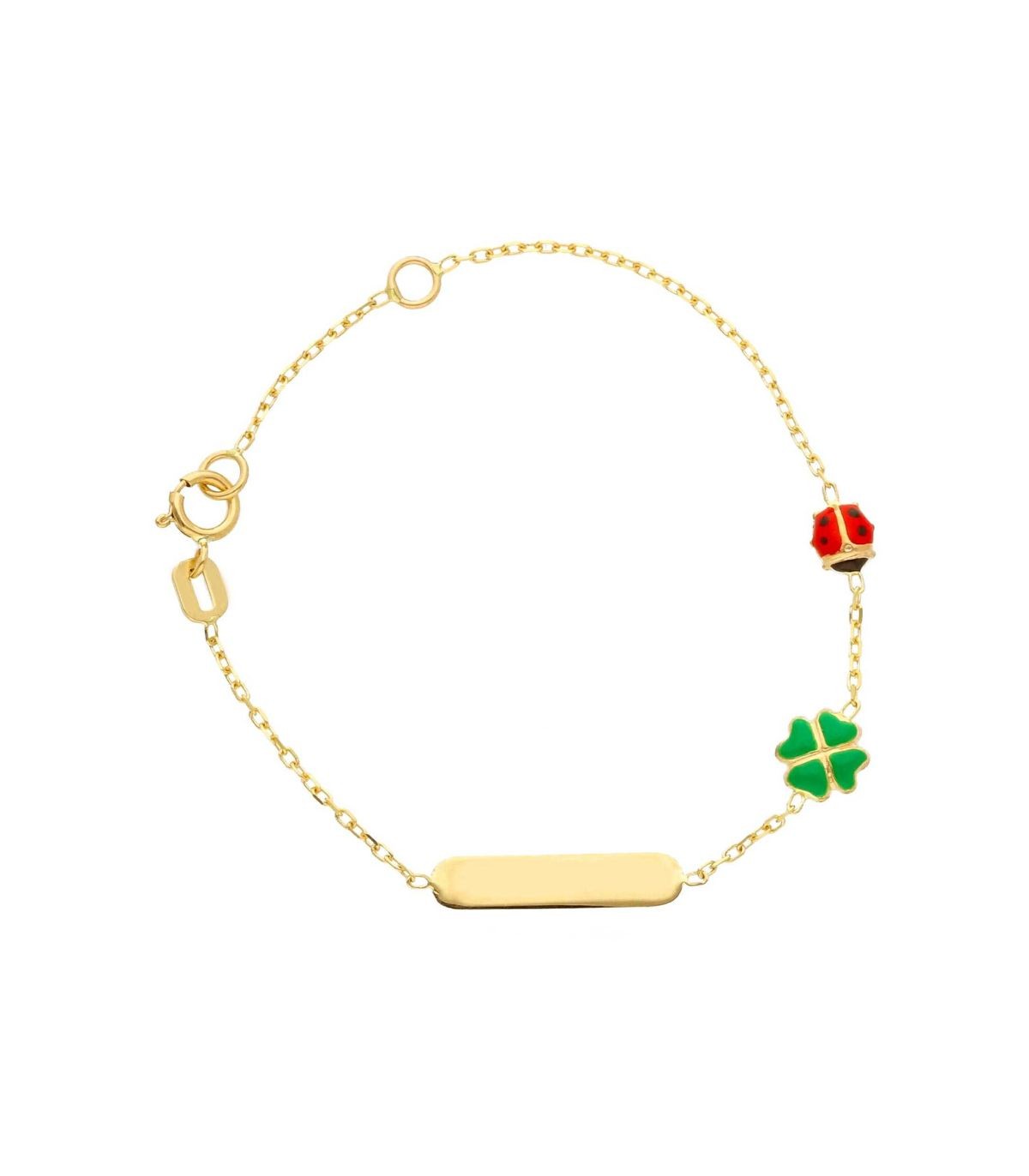 Bracciale Coccinella e Quadrifoglio Targhetta Oro Giallo 18kt Smalto