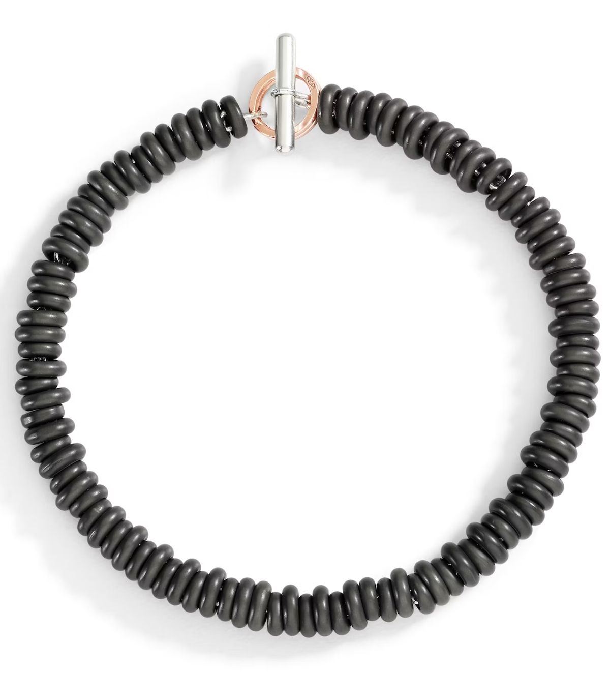 Bracciale Dodo con catena in argento, anello brisé in oro rosa 9 kt e rondelle in titanio.