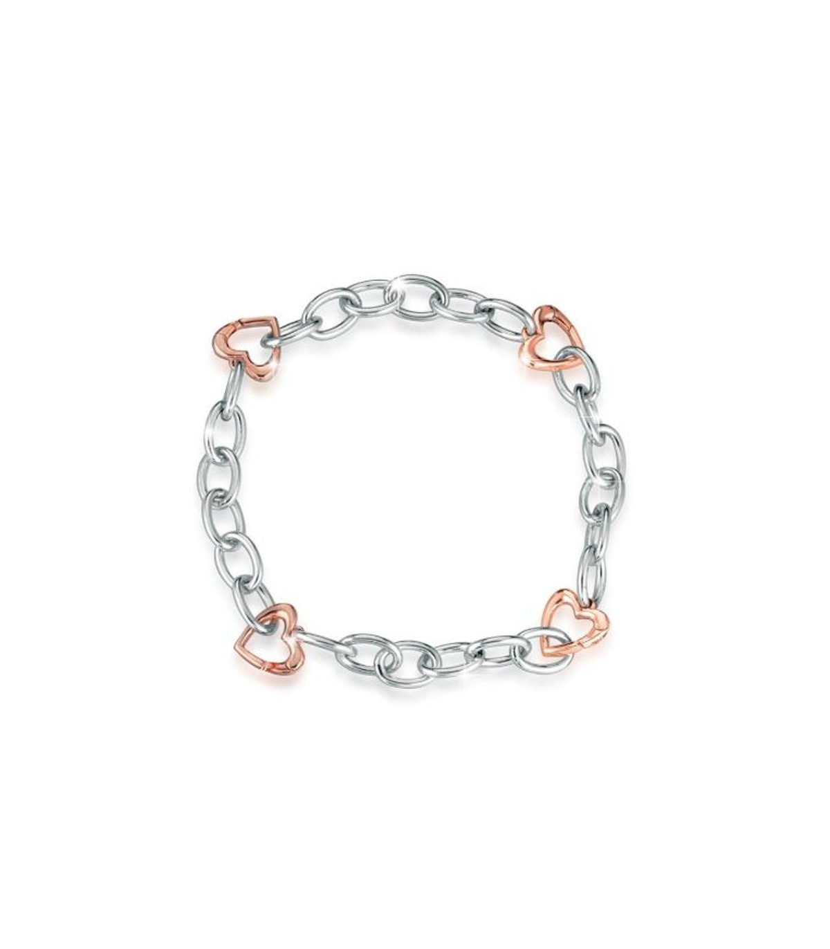 Elemento da Bracciale componibile. Link in argento 925 e moschettone a forma di cuore in oro rosa. Tieni stretto al cuore ciò in cui credi.