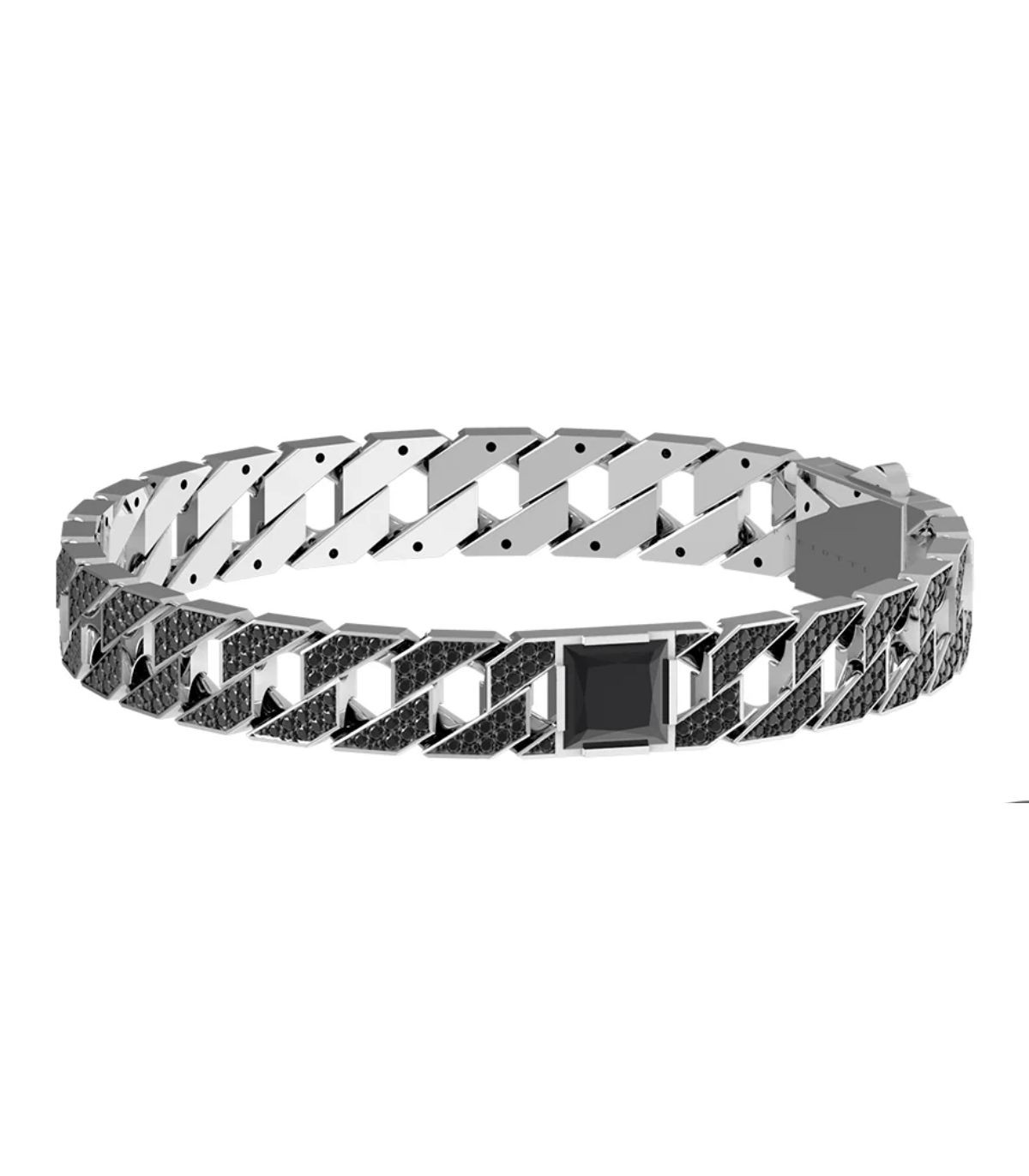 Braccialetto Cesare Paciotti della Collezione Blaze, realizzato in argento e impreziosito da pavé di spinelli neri.