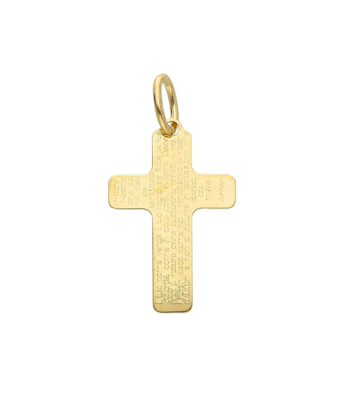 Ciondolo croce con incisione del Padre Nostro, realizzata in oro giallo 18kt.