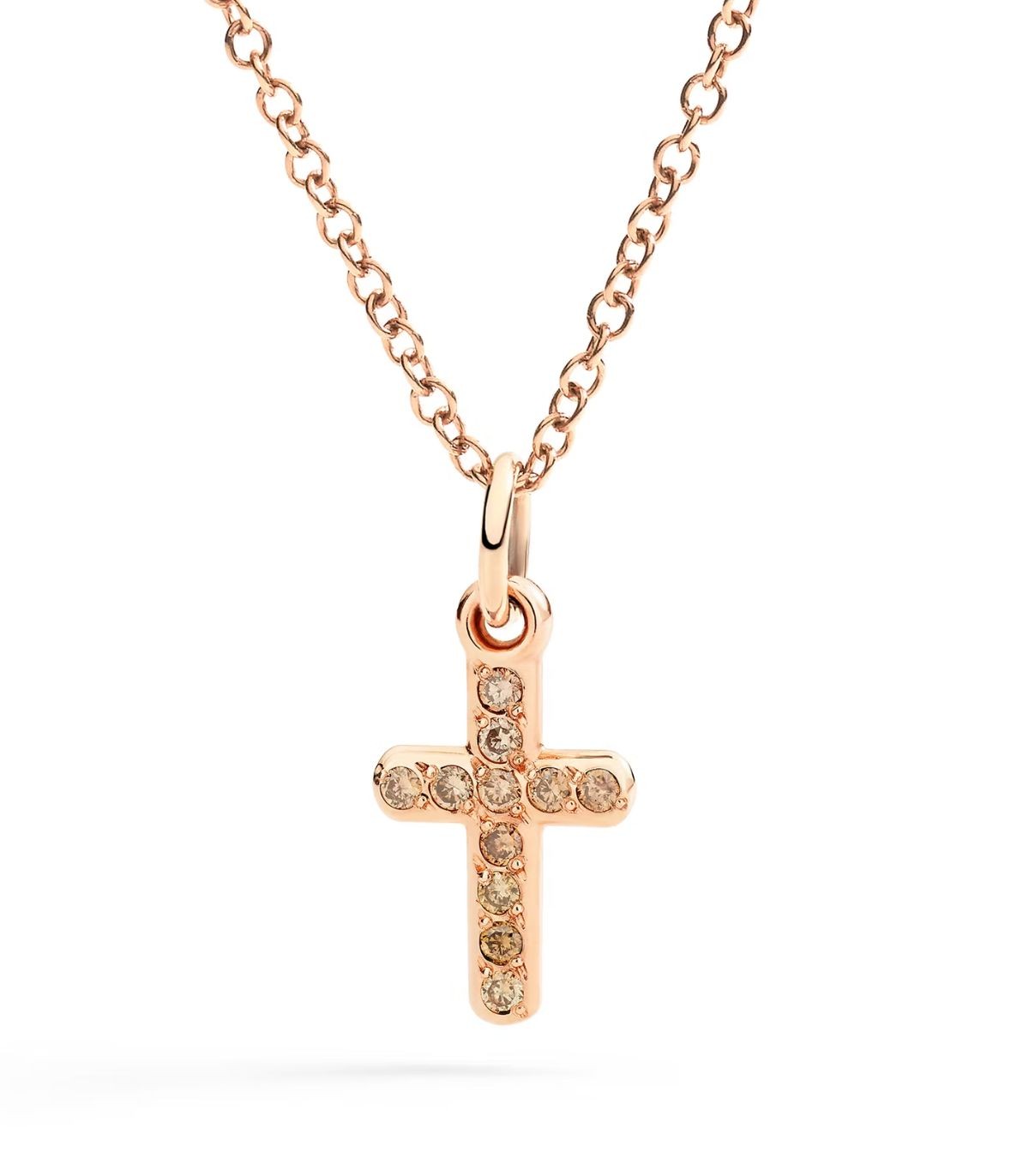 Ciondolo Dodo Croce Oro Rosa 9kt e Diamanti Brown
