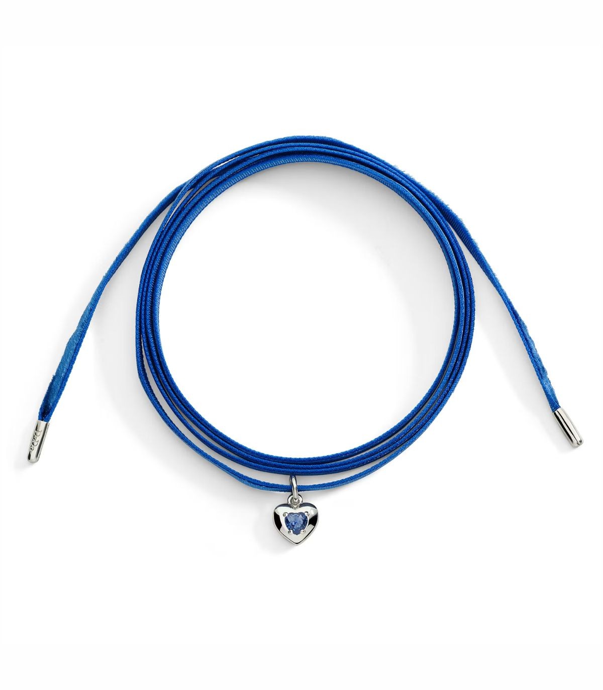 Ciondolo Dodo Cuore in Argento e Zaffiro azzurro sintetico (ct 0,24). Dietro uno spazio segreto attende la tua incisione.