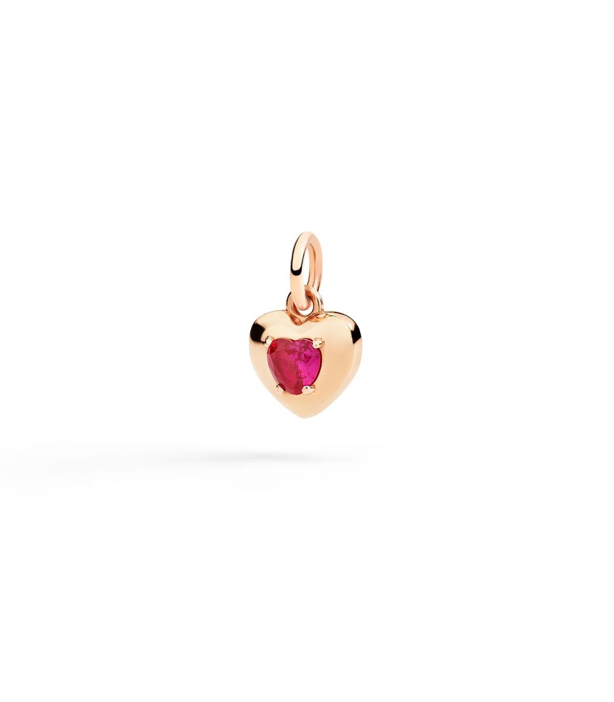 Ciondolo Dodo Cuore Oro Rosa e Rubino Sintetico