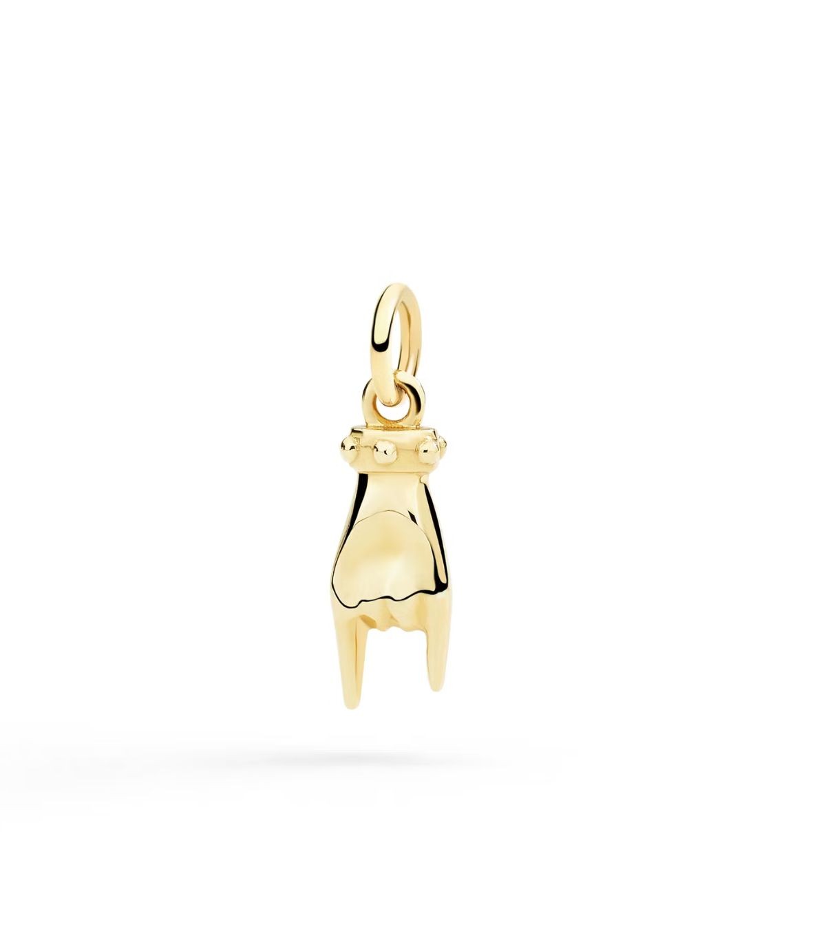 Il ciondolo Mano, realizzato in oro giallo 9kt, esprime cura e continuità: una piccola promessa di protezione da tenere sempre con sé.