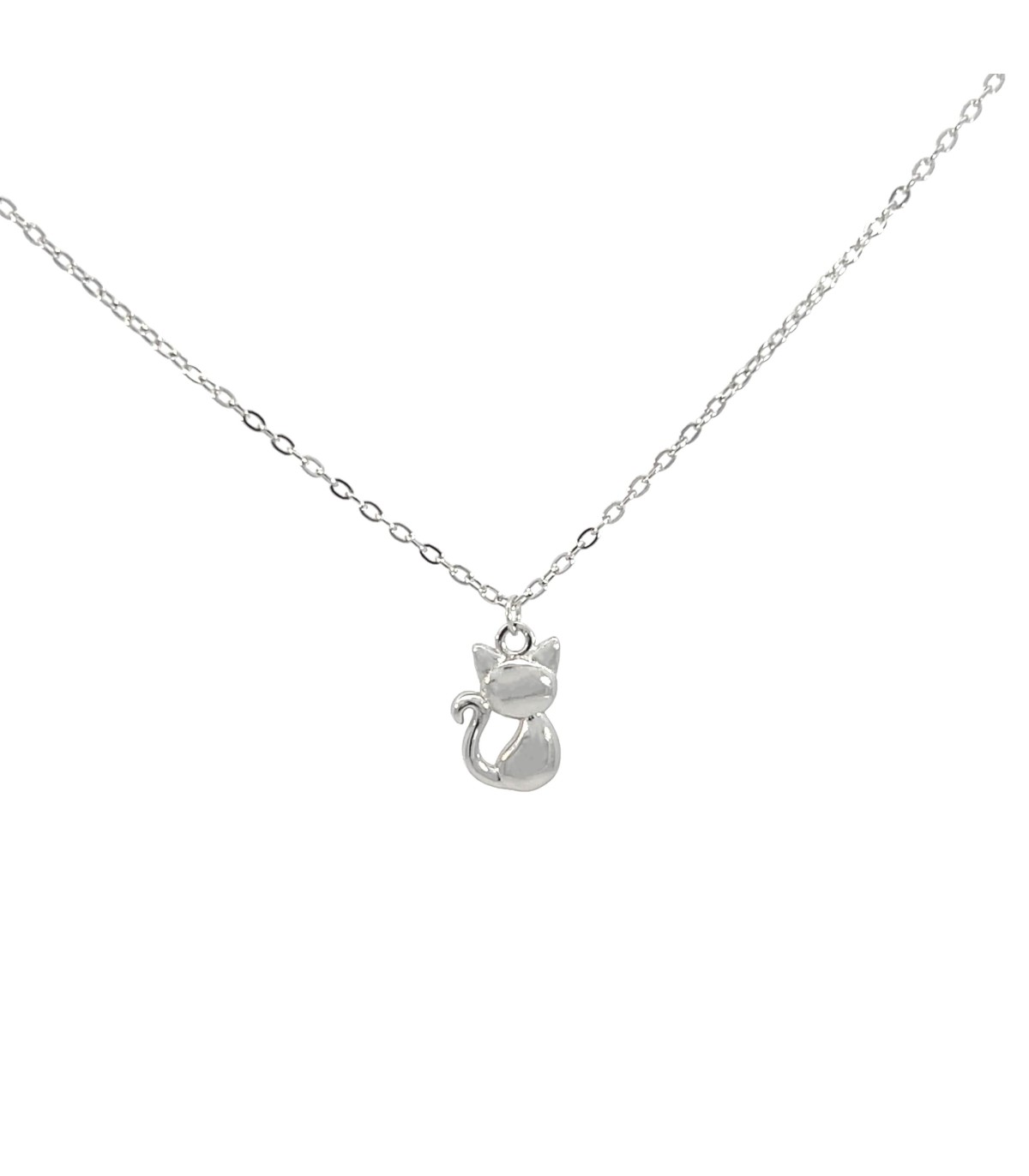 Collana realizzata in argento con ciondolo pendente a forma di gatto. Chiusura a moschettone