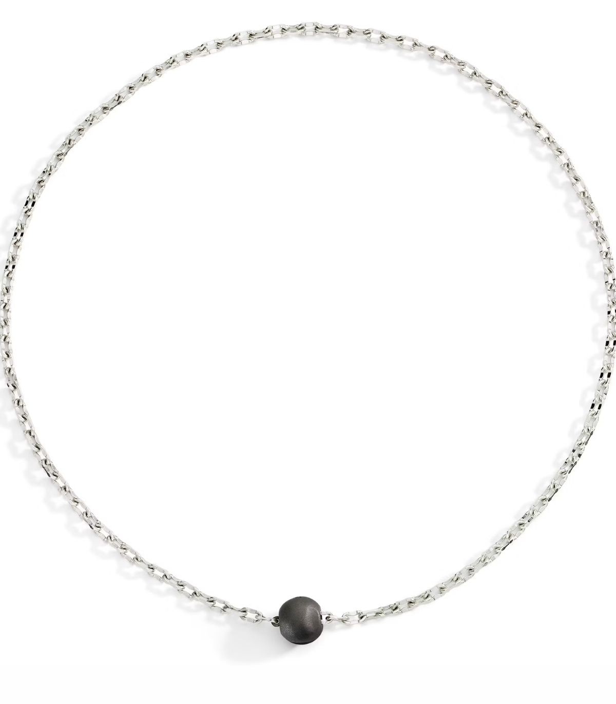Collana Dodo Pepita realizzata in argento e unica pepita in titanio. Chiusura "Shell" che sostituisce la vecchia chiusura T-Bar
