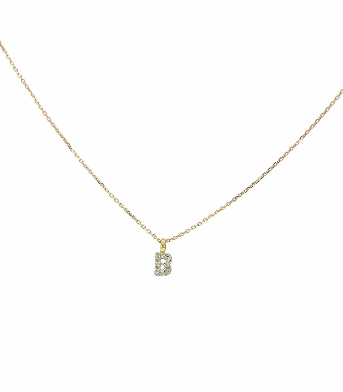 Collana Personalizzata collezione Miraggi Letters. Collana realizzata in oro giallo 9kt, con ciondolo lettera pendente e diamanti 0.06 ct.