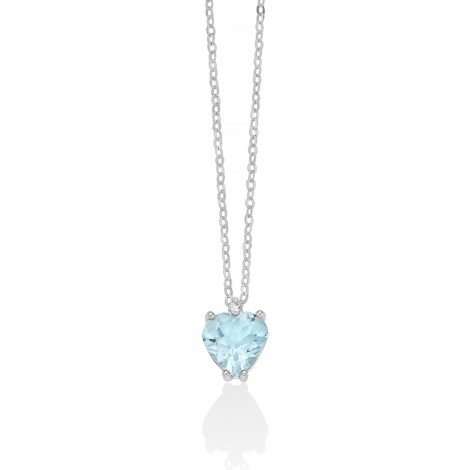 Collana per donna Miluna, Realizzata in oro 18 kt (750) con diamanti 0,95 ct totali con pietra acquamarina taglio cuore 0,95ct.