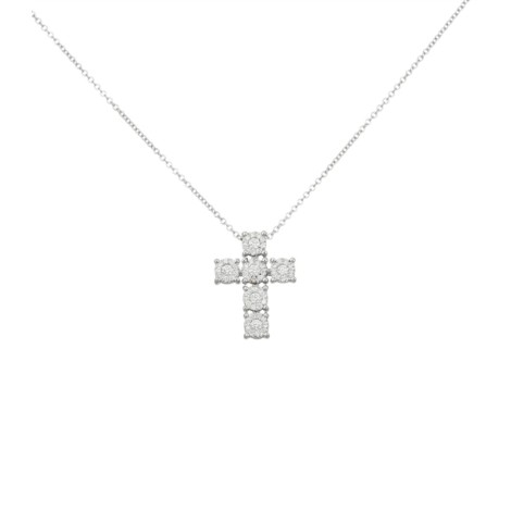 Collana Croce Recarlo della collezione Nodo D'Amore. Realizzata in oro bianco 18kt e diamanti 0,60 totali.