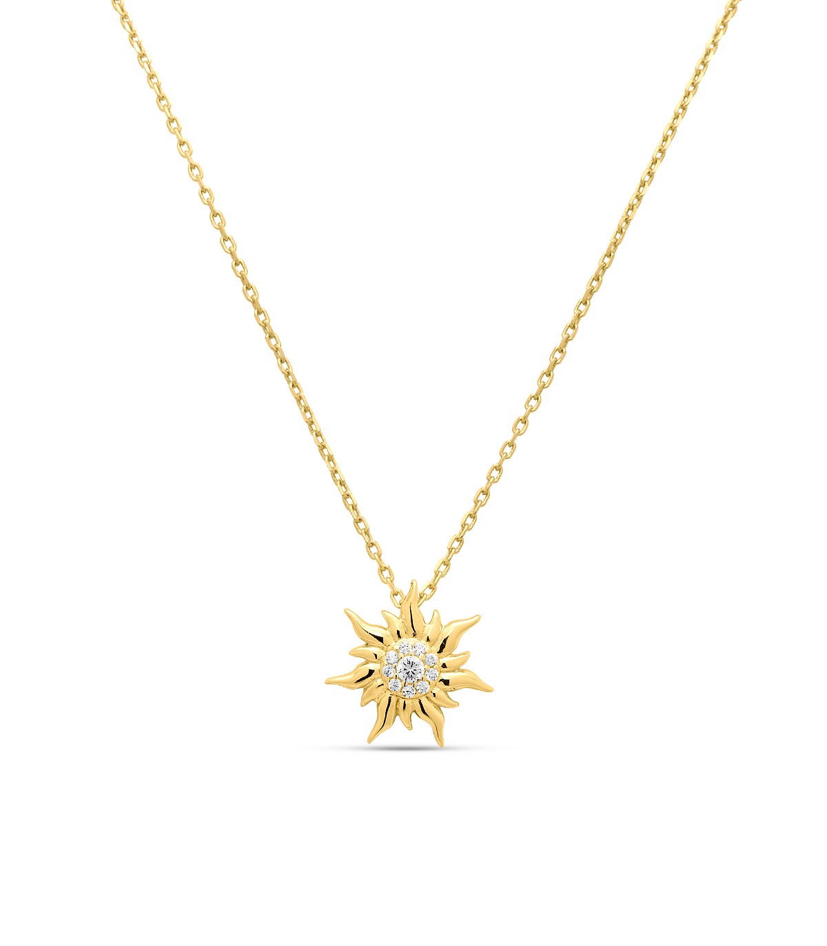Scopri il potere dei simboli con la collana MiRaggi Amulets: un gioiello luminoso, pensato per accompagnarti ogni giorno come un piccolo talismano personale. Il ciondolo a forma di Sole, con raggi sinuosi e finitura brillante, custodisce al centro un elegante pavé di pietre bianche che cattura la luce ad ogni movimento, regalando un effetto raffinato e prezioso.