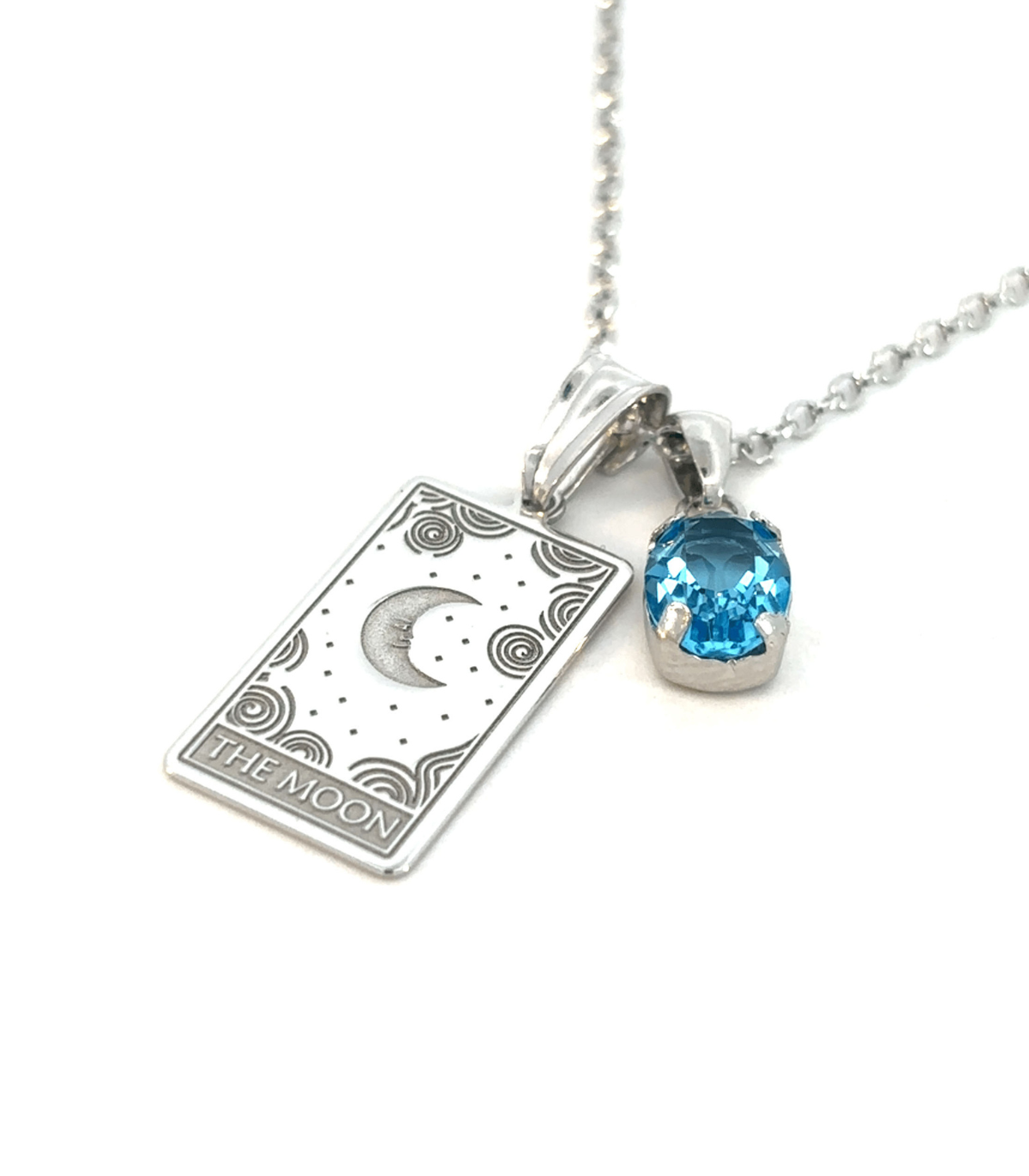 Collana The Moon Ciondolo Tarocchi MiRaggi Amulets con Swarovski Acquamarina