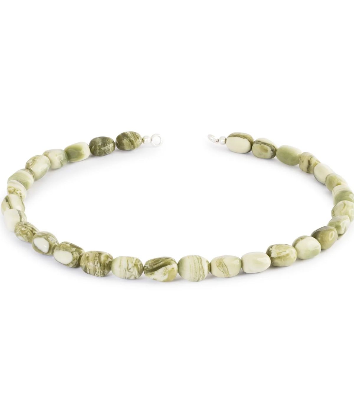 "La calma del verde e l'energia del giallo si fondono in questa collana portando armonia nel cuore e nella mente. Indossala sempre per ricordarti sempre che il vero rinnovamento inizia dall'interno."
