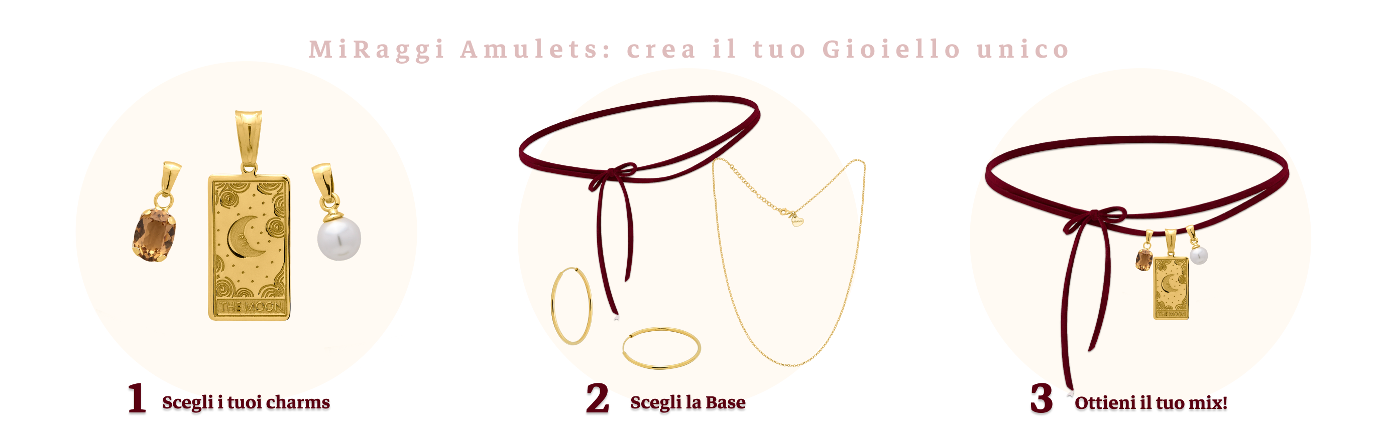 Collezione MiRaggi Amulets: crea il tuo Gioiello unico. Chocker, Collane, Orecchini e Charms