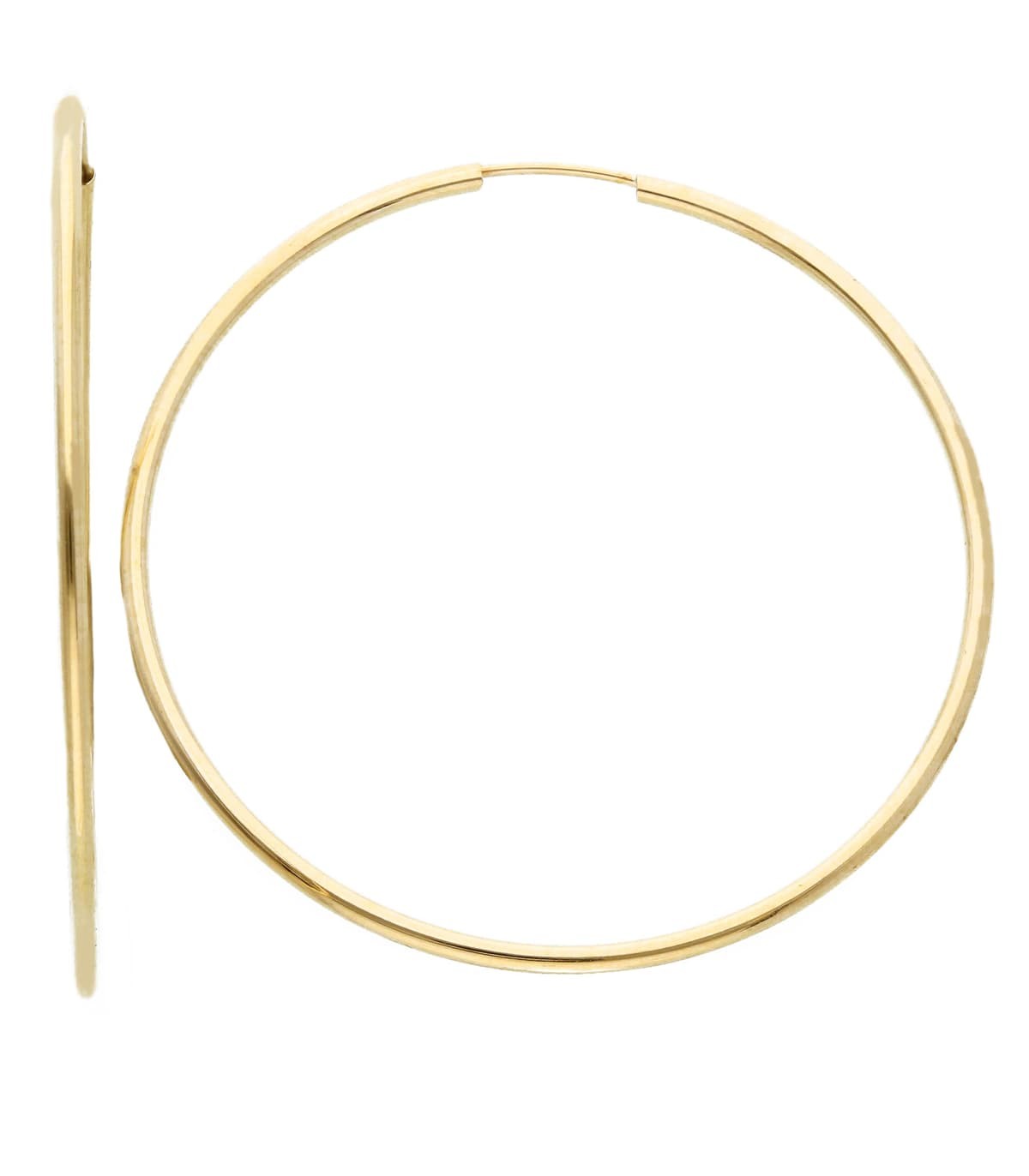 Orecchini cerchio della Collezione Miraggi Essentials. Orecchini a cerchio sottili, realizzati in oro giallo 9kt. Chiusura a scomparsa.