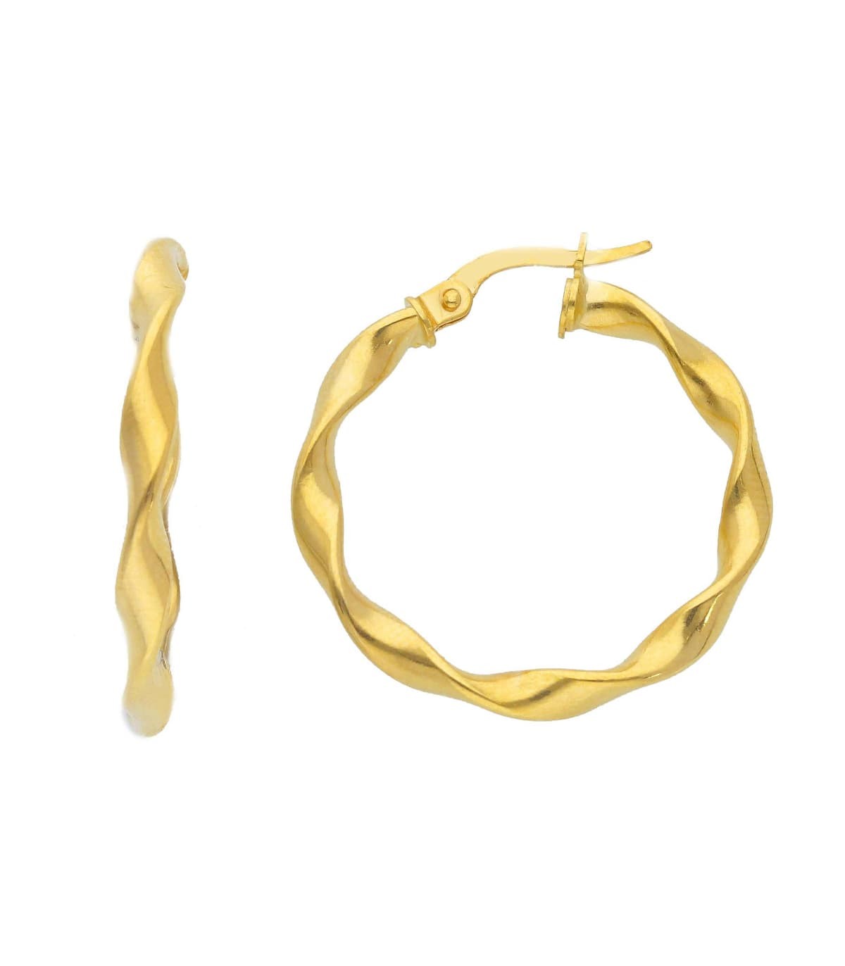 Orecchini cerchio della Collezione Miraggi Essentials. Orecchini a cerchio torchon realizzati in oro giallo 9kt. Chiusura a scatto.