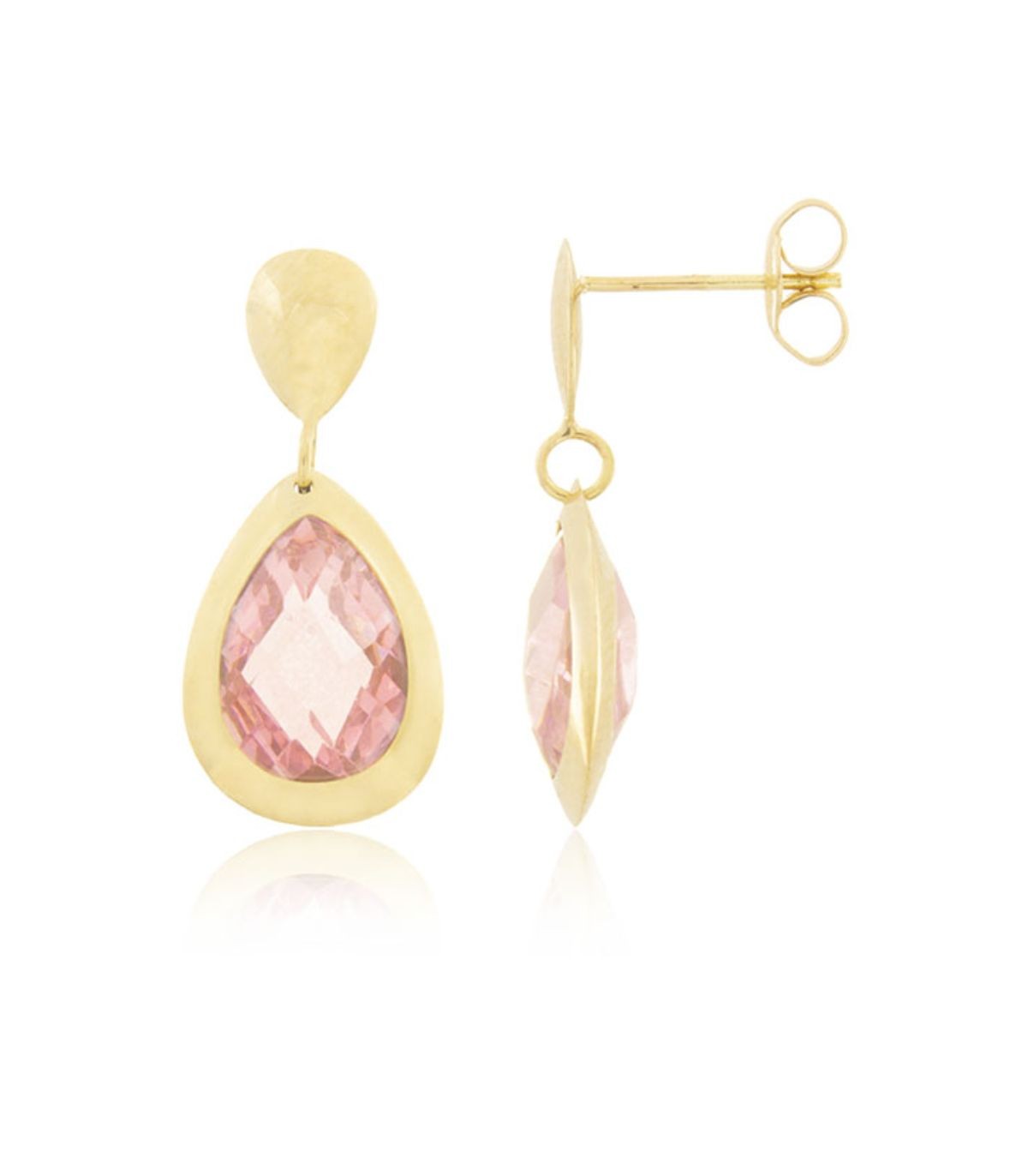 Orecchini Pendenti Goccia Quarzo Rosa Oro Giallo 9kt