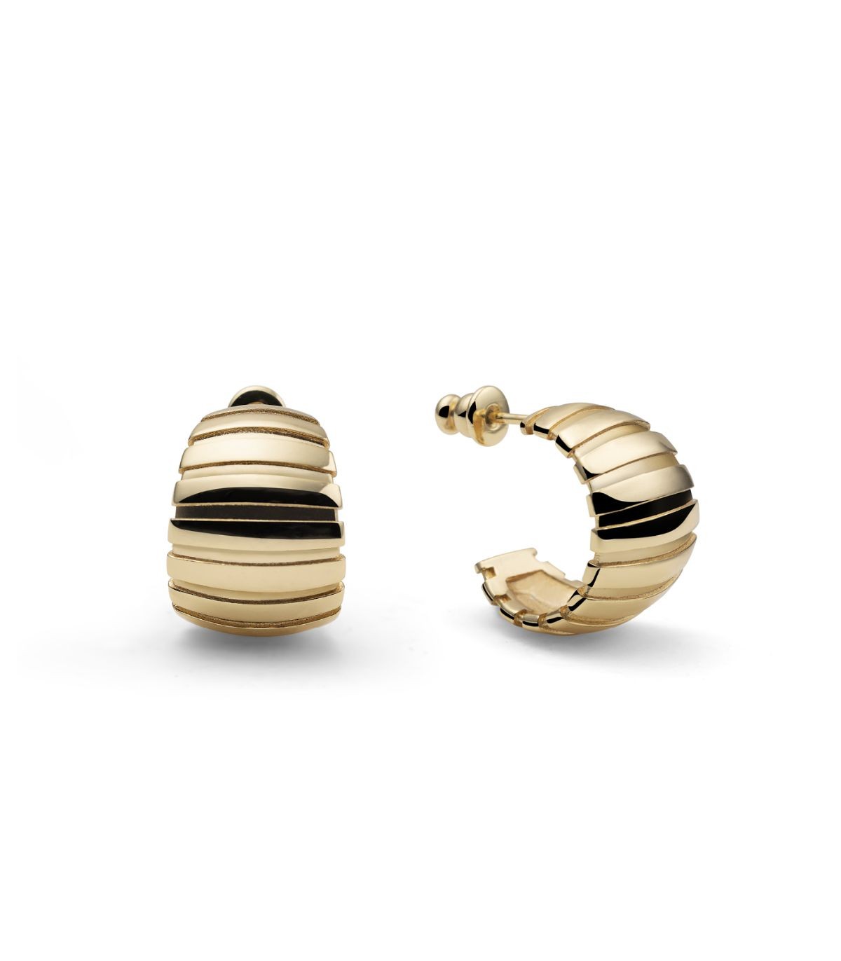 Unoaerre Fashion Jewellery Bronzo. Orecchini a semicerchio in bronzo dorato, con finitura lucida scanalata. Chiusura a farfalla.