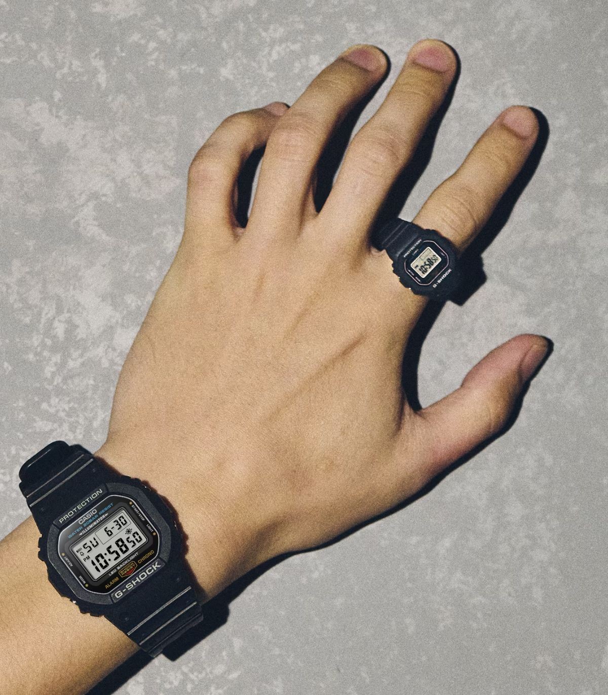 Orologio Casio dalle dimensioni di un anello, prima riproduzione in miniatura del modello DW-5600.