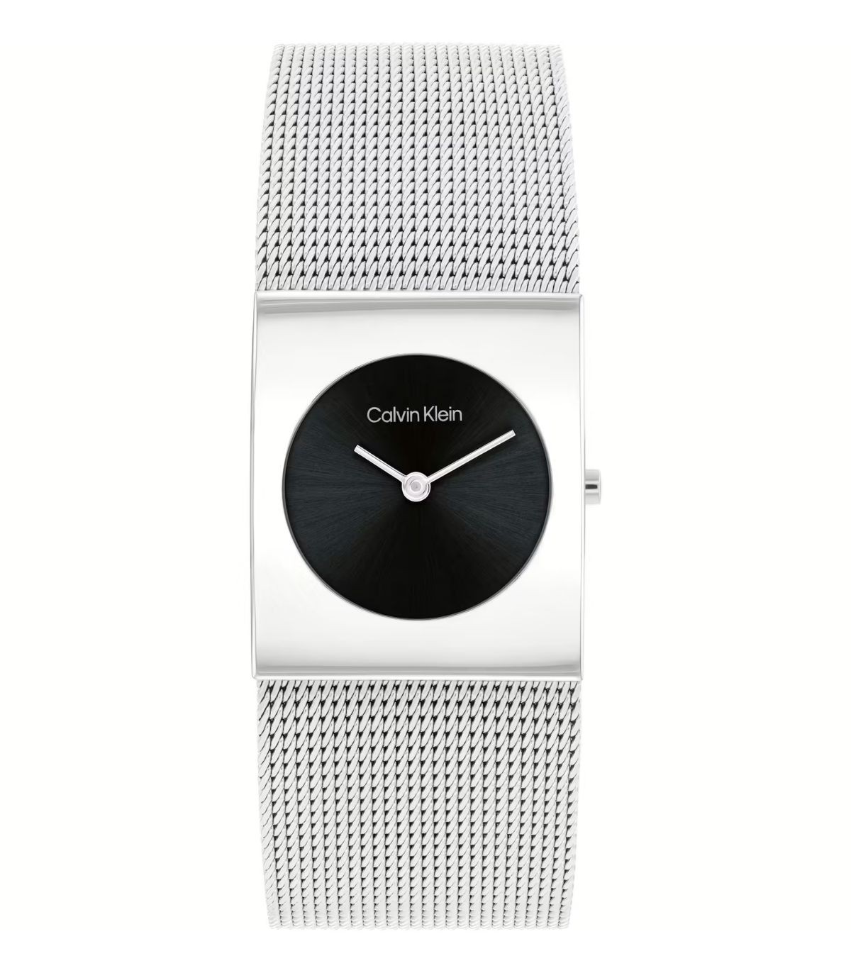 Orologio Solo tempo da donna della collezione Pulse. Cassa squadrata in acciaio con quadrante nero dal diametro di 24 mm. Cinturino in maglia milano e chiusura con fermaglio di sicurezza. Impermeabile fino a 3 atm, vetro minerale.