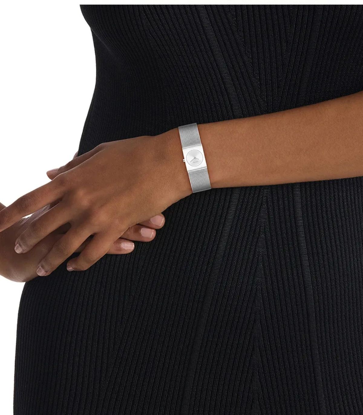 Orologio Solo tempo da donna della collezione Pulse. Cassa squadrata in acciaio con quadrante argentato dal diametro di 24 mm. Cinturino in acciaio in maglia milano e chiusura con fermaglio di sicurezza. Impermeabile fino a 3 atm, vetro minerale.