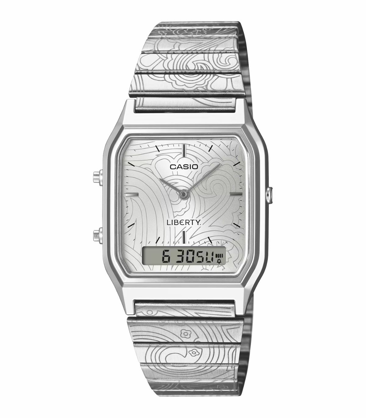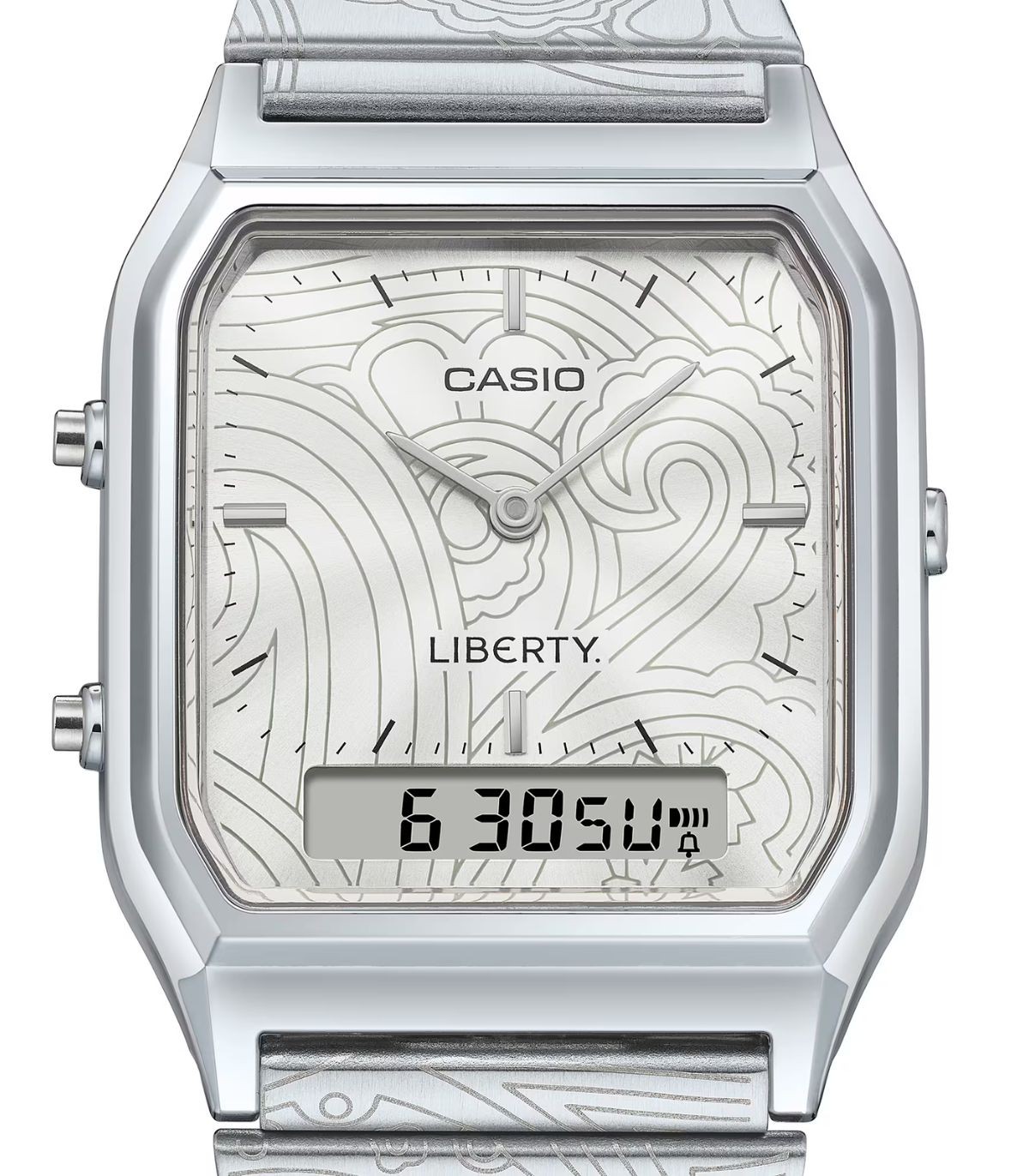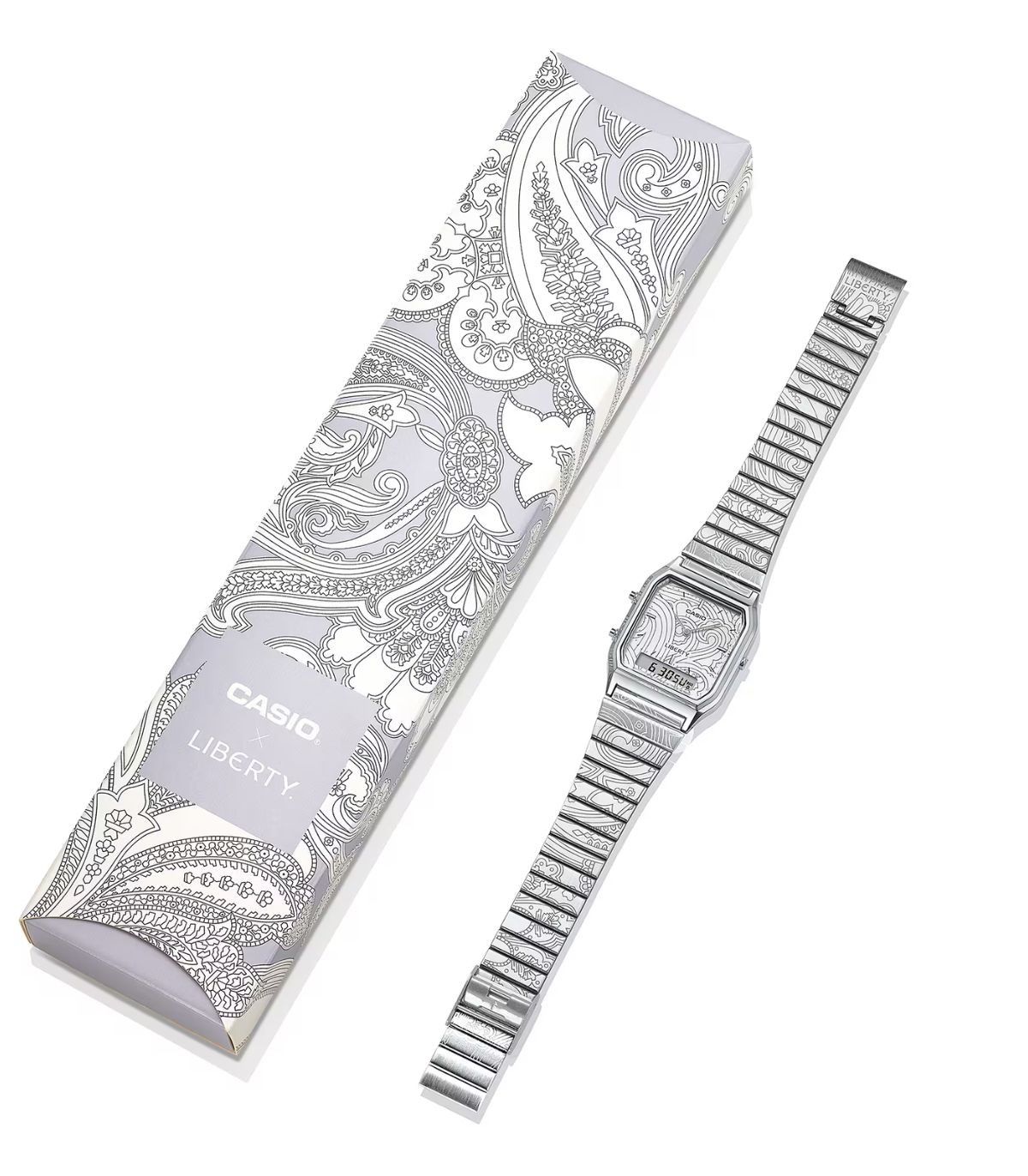 Casio vintage in una veste ricca e sofisticata, decorata con il celebre motivo Paisley della casa di design britannica Liberty.