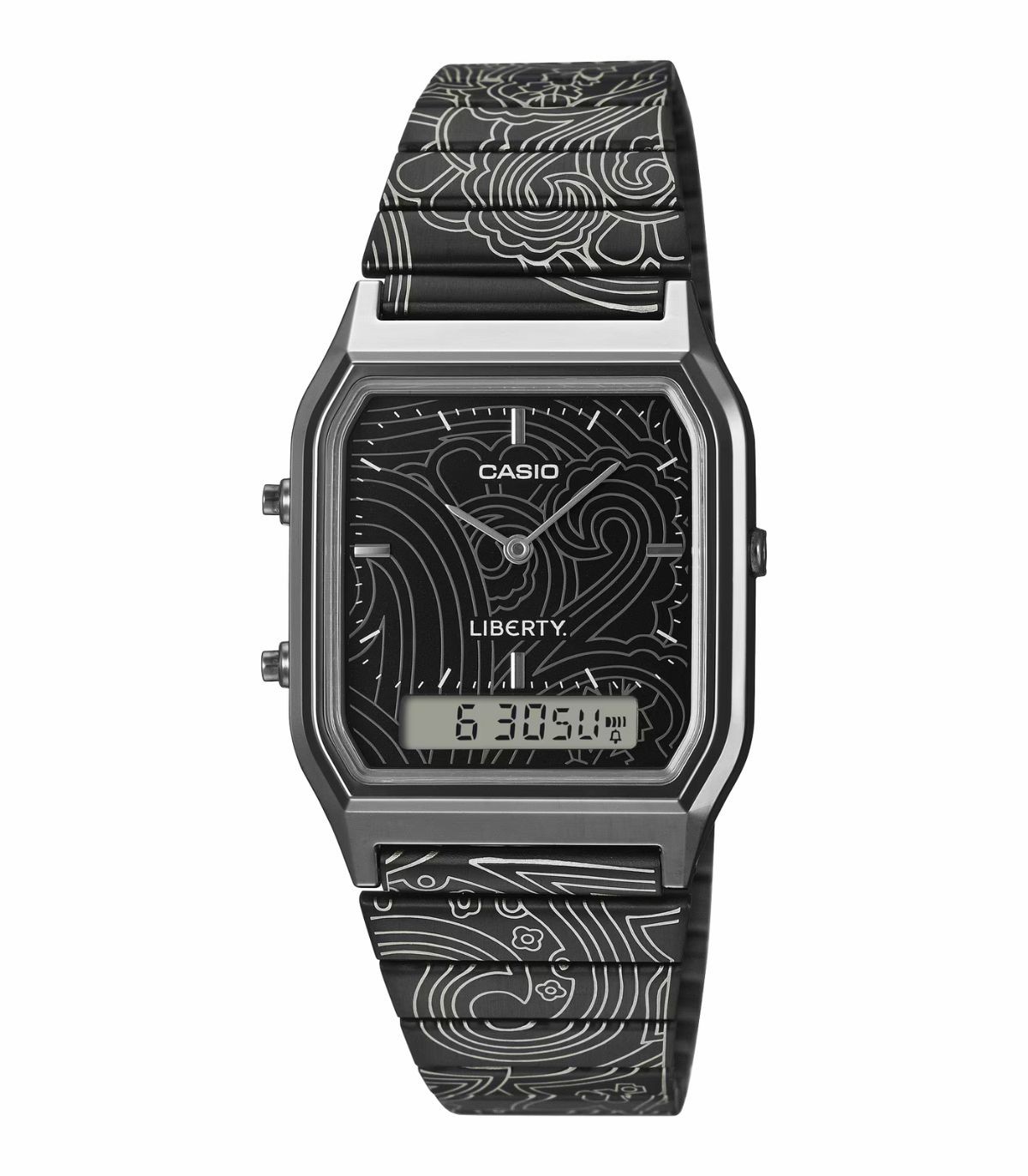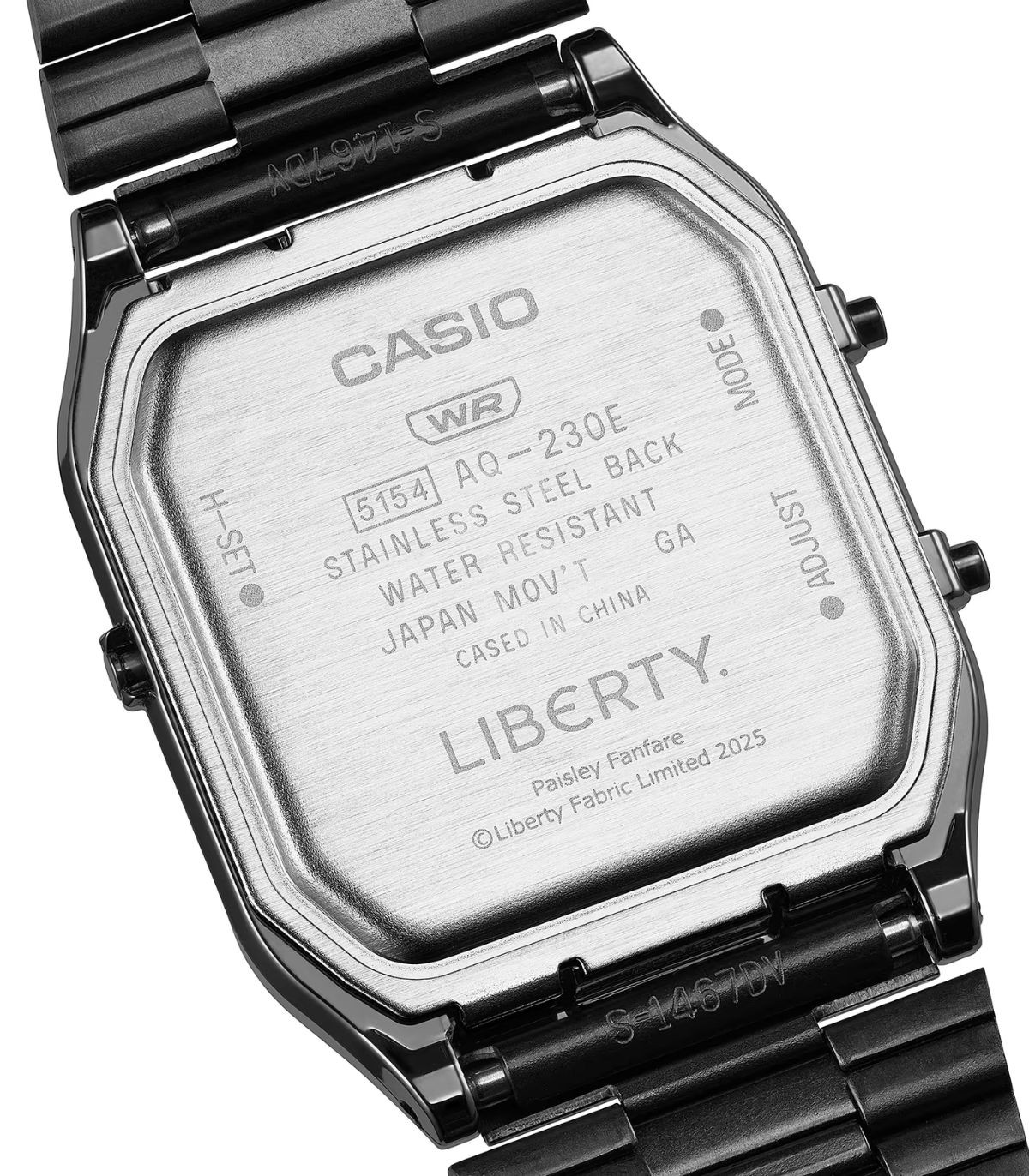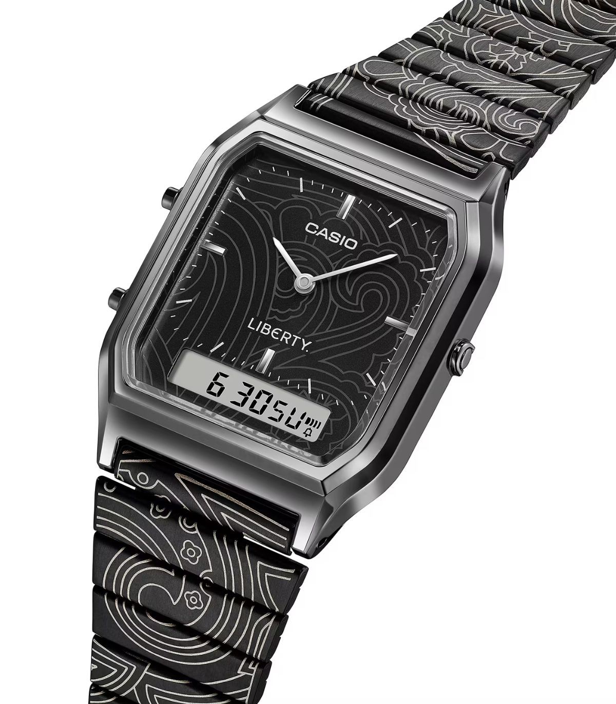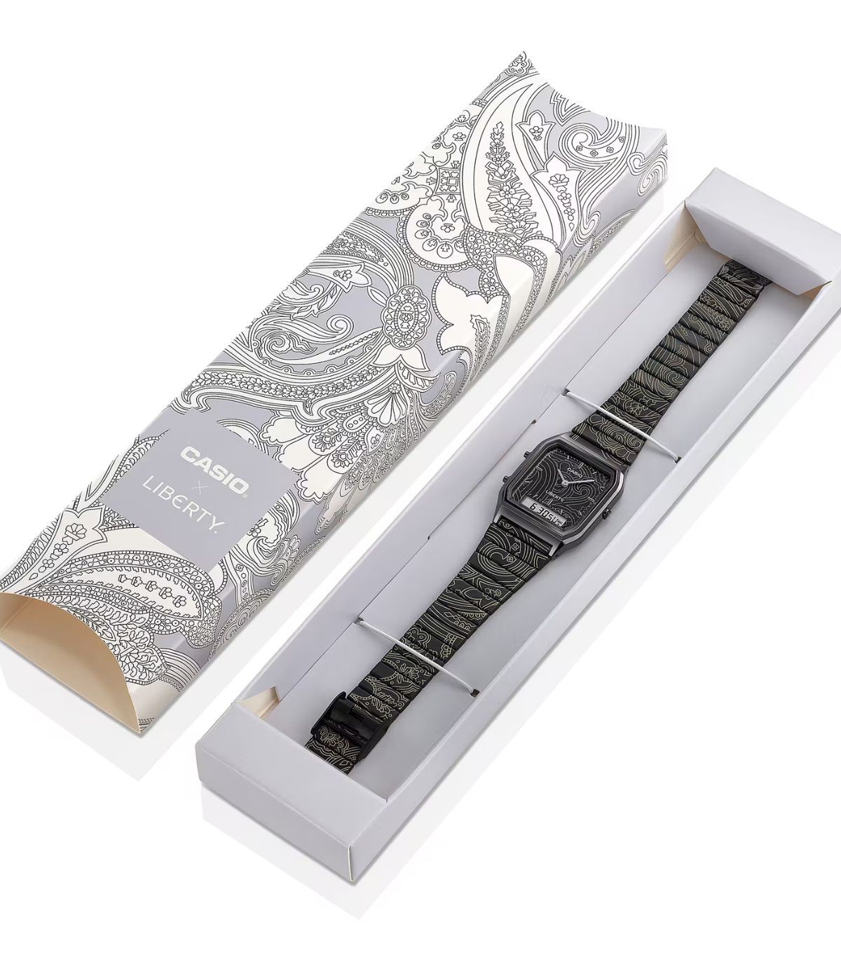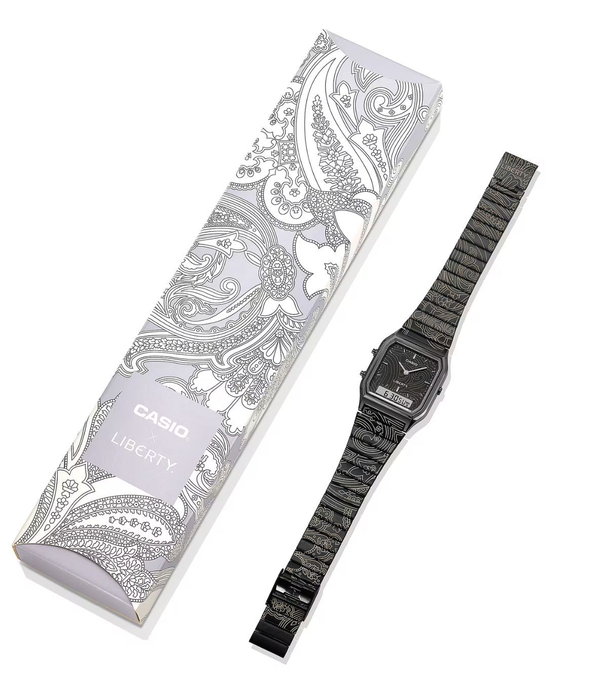 Casio vintage in una veste ricca e sofisticata, decorata con il celebre motivo Paisley della casa di design britannica Liberty.