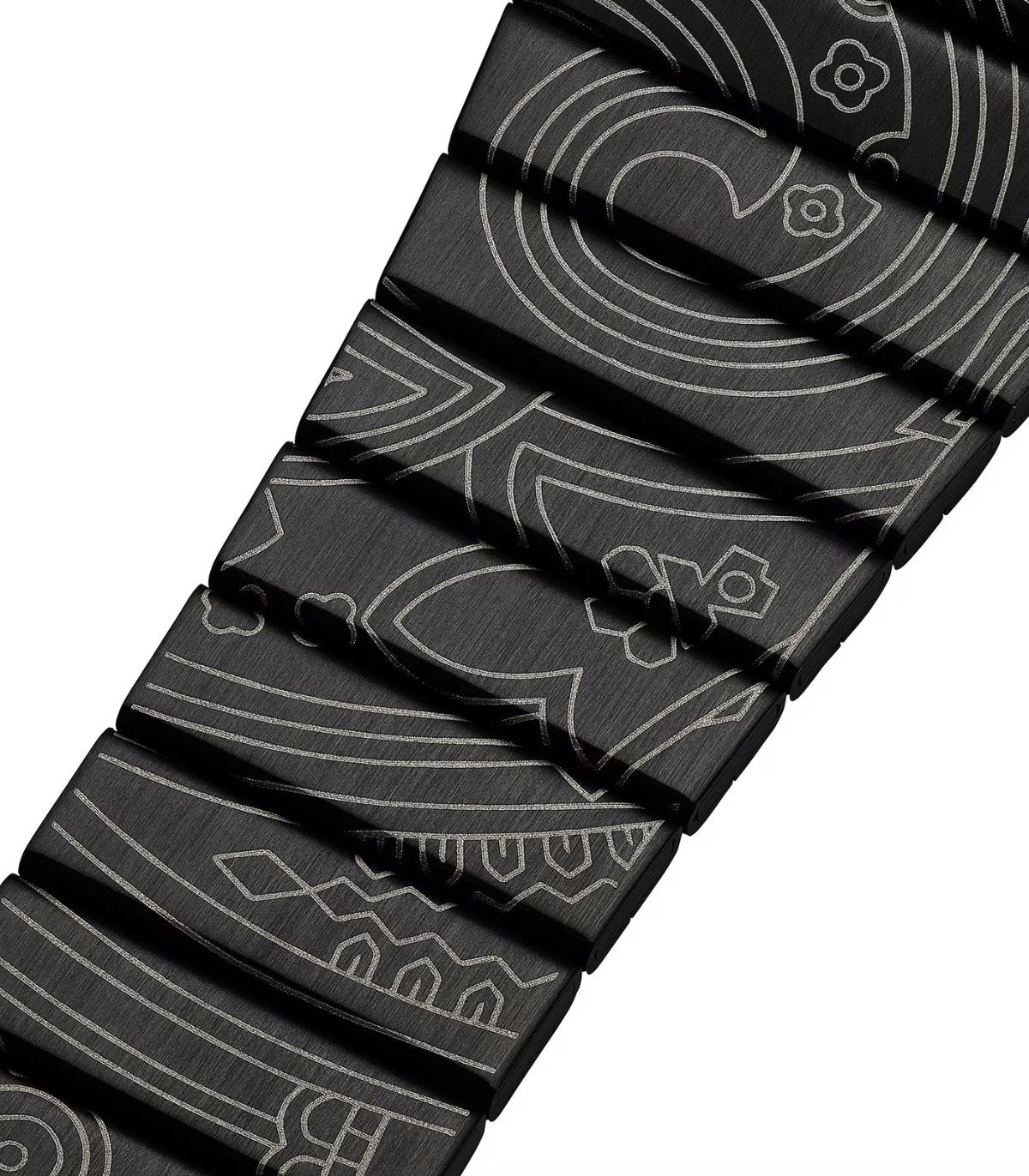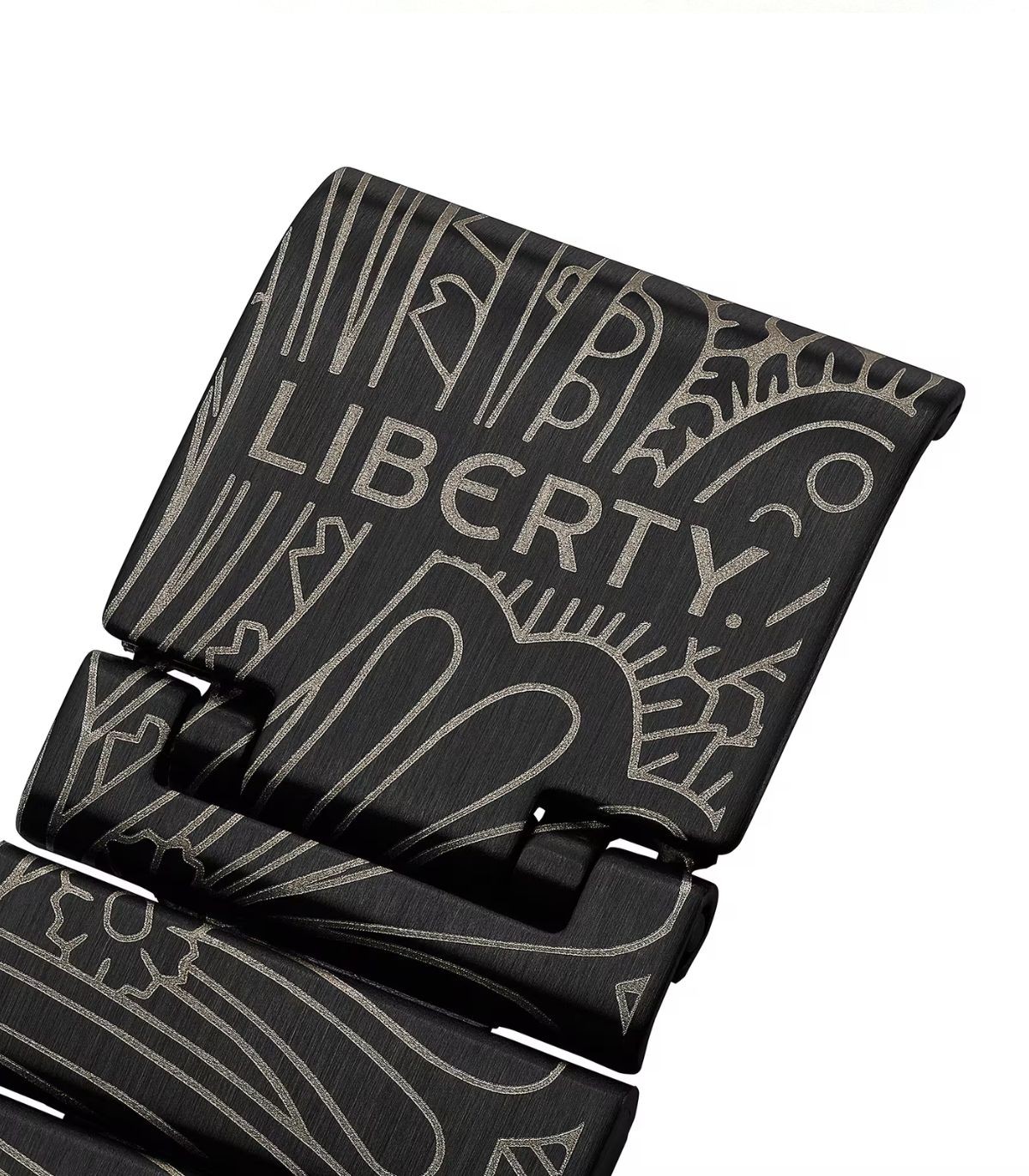 Quadrante squadrato e doppio display analogico-digitale, caratterizzato da linee geometriche che creano un elegante contrasto con le linee armoniose del motivo paisley inciso con laser su cinturino e quadrant. Completano il design il logo Liberty sulla fibbia e sul fondello. Realizzato in acciaio inossidabile, presenta una chiusura che può essere regolata con grande facilità in base alle proprie esigenze.
