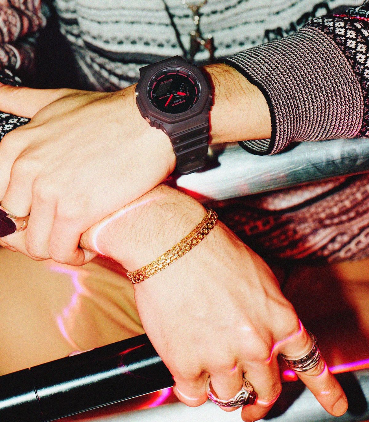 Il modello GA-2100K analogico digitale offre pratiche funzioni come l'ora internazionale e il cronometro, una luce LED ad alta luminosità. Realizzato in resina e carbonio e disponibile in una selezione di combinazioni di colori.