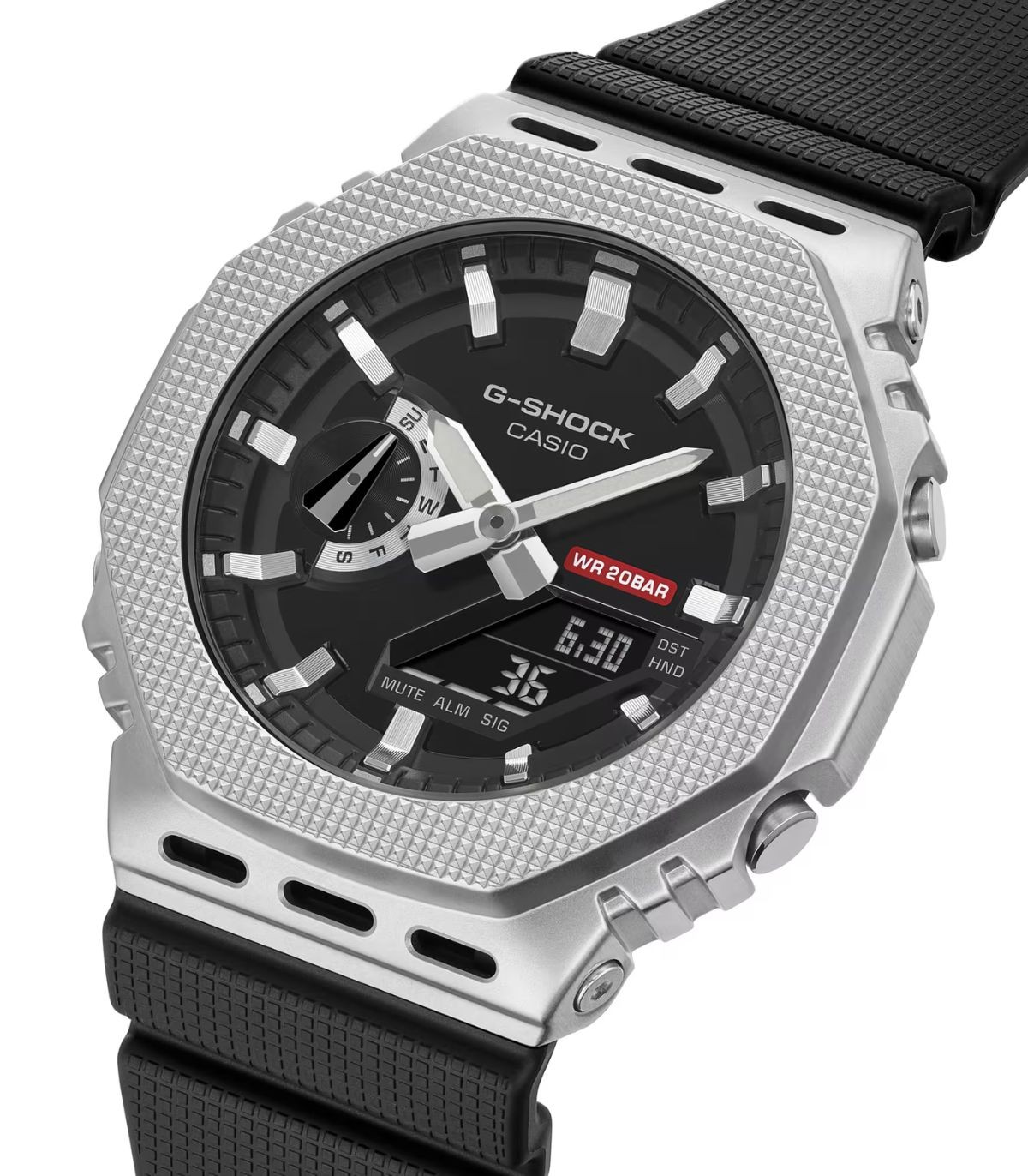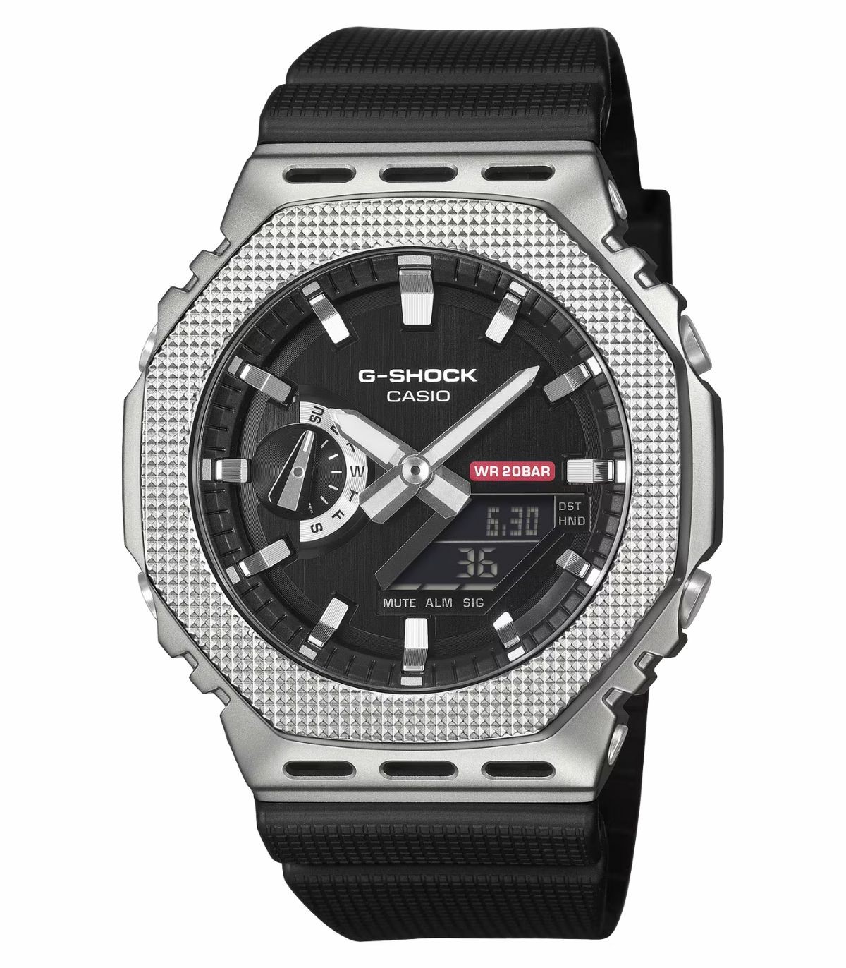 Orologio Analogico-digitale con cassa ottagonale con quadrante Silver e cinturino in gomma di colore nero che dona maggiore flessibilità. Antiurto e step-tracker per accompagnarti in ogni tua avventura quotidiana nel traffico o all'aria aperta.