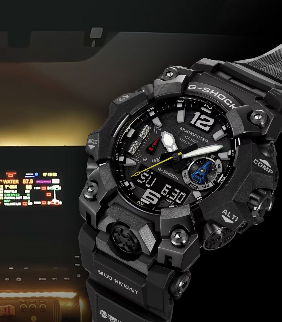 Nuovo modello di Casio G-Shock Master Of G, in collaborazione con Team Land Cruiser Toyota Auto Body, ispirato alle prove notturne della Dakar Rally, la gara più estrema al mondo.