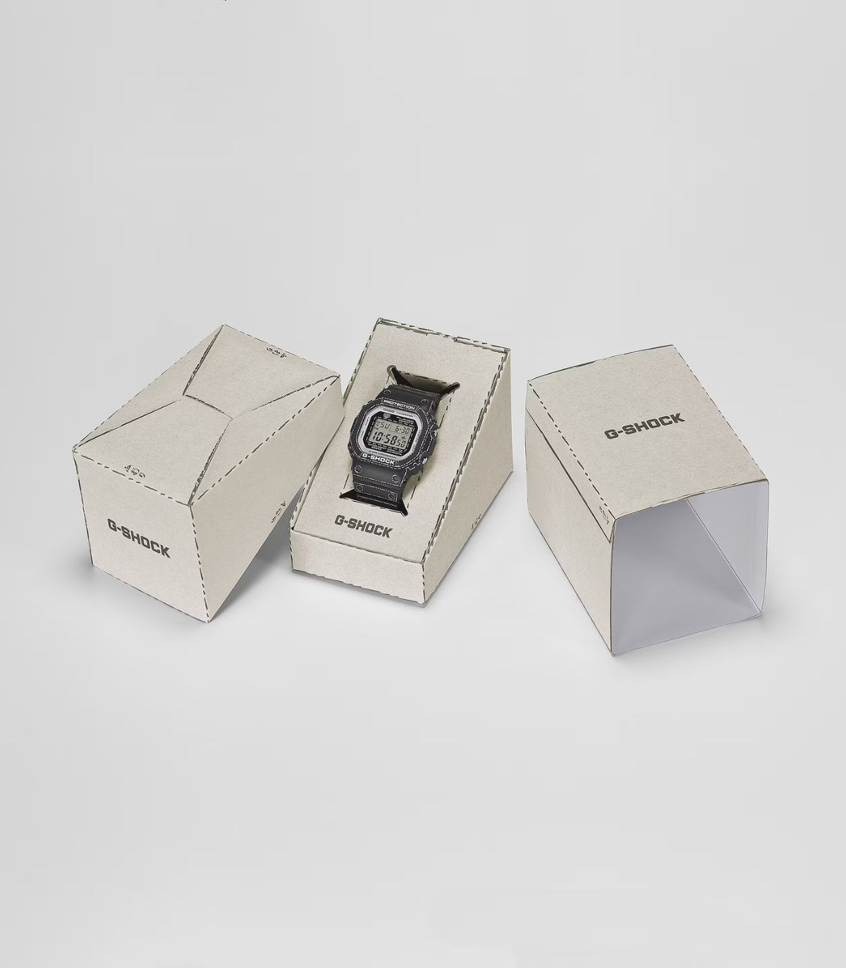 Orologio Casio della serie 5600, ispirato alle arti giapponesi e celebrazione della libertà di esprimere infinite possibilità a partire da un singolo foglio di carta, con un design che evoca le pieghe degli origami, dalla lunetta al cinturino.