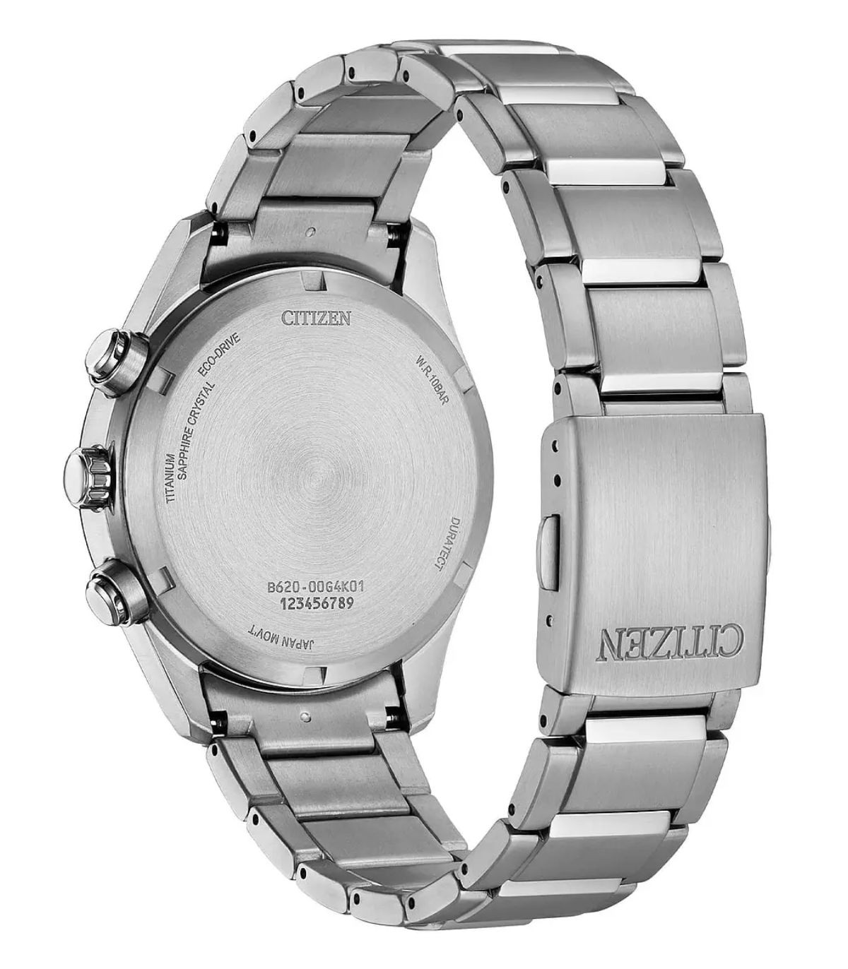 Orologio con cassa da 40mm, quadrante grigio e chiusura con pulsante di sicurezza. La cassa e il cinturino sono realizzati interamente in SuperTitanio, un materiale fino al 40% più leggero dell'acciaio e resistente ai graffi, protetti da un vetro zaffiro antigraffio. Alimementato da un movimento Eco-drive a carica solare. Impermeabilità fino a 10 atm.