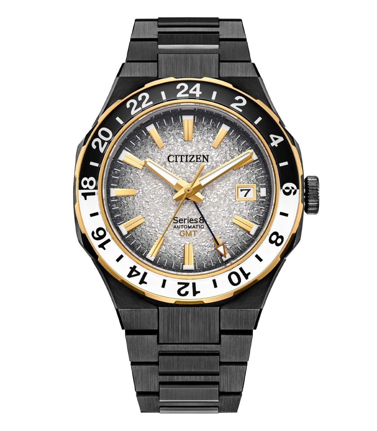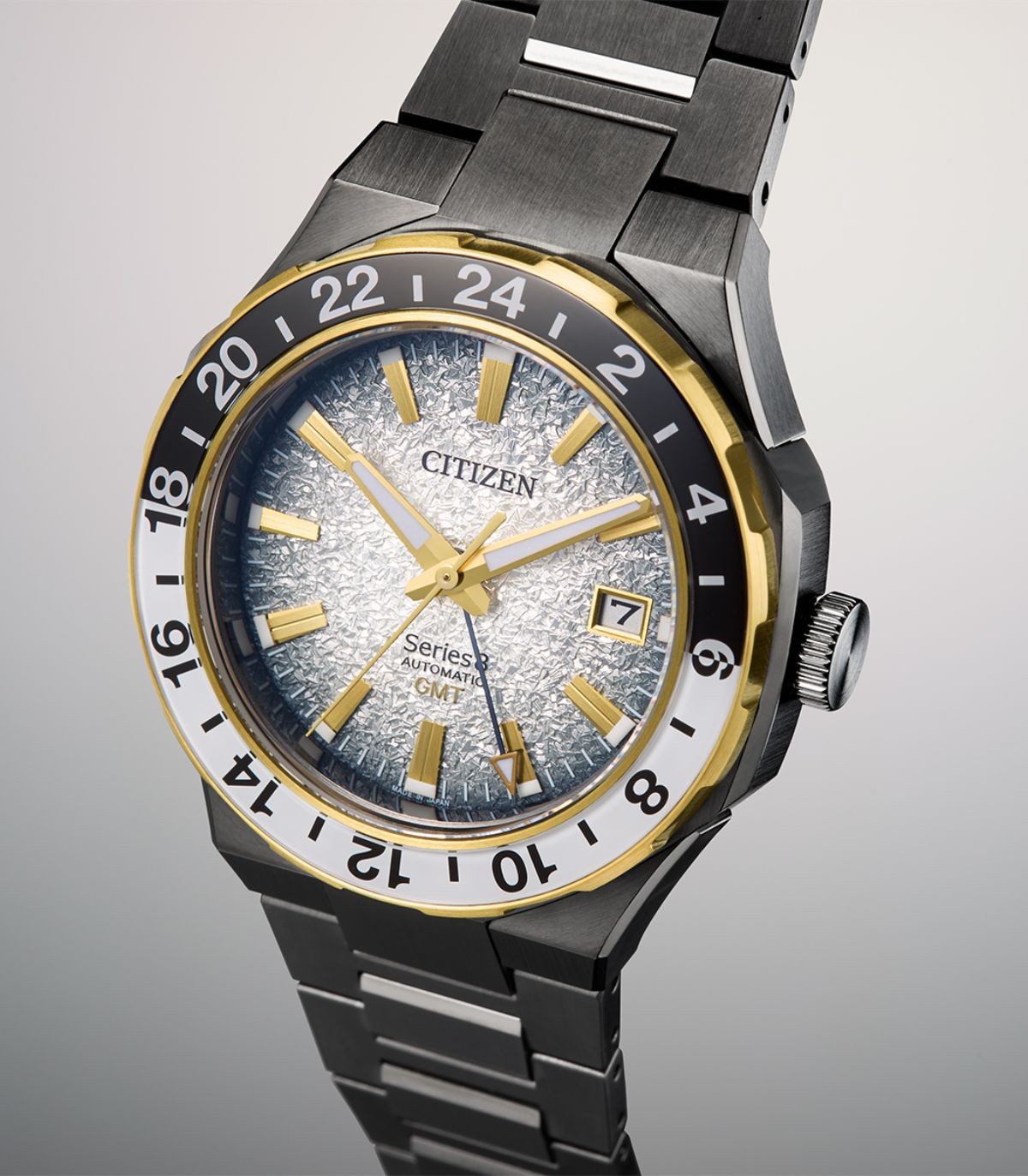 Orologio Citizen Serie 8 880 GTM Mechanical Limited Edition con funzione GMT e ghiera bidirezionale. Orologio Citizen con movimento meccanico a ricarica automatica (cal.9054) con riserva di carica di 50 ore. Antimagnetico 16000 A/m. Edizione limitata di solo 100 pezzi in Italia, con cinturino IP nero e e quadrante silver texturizzato.