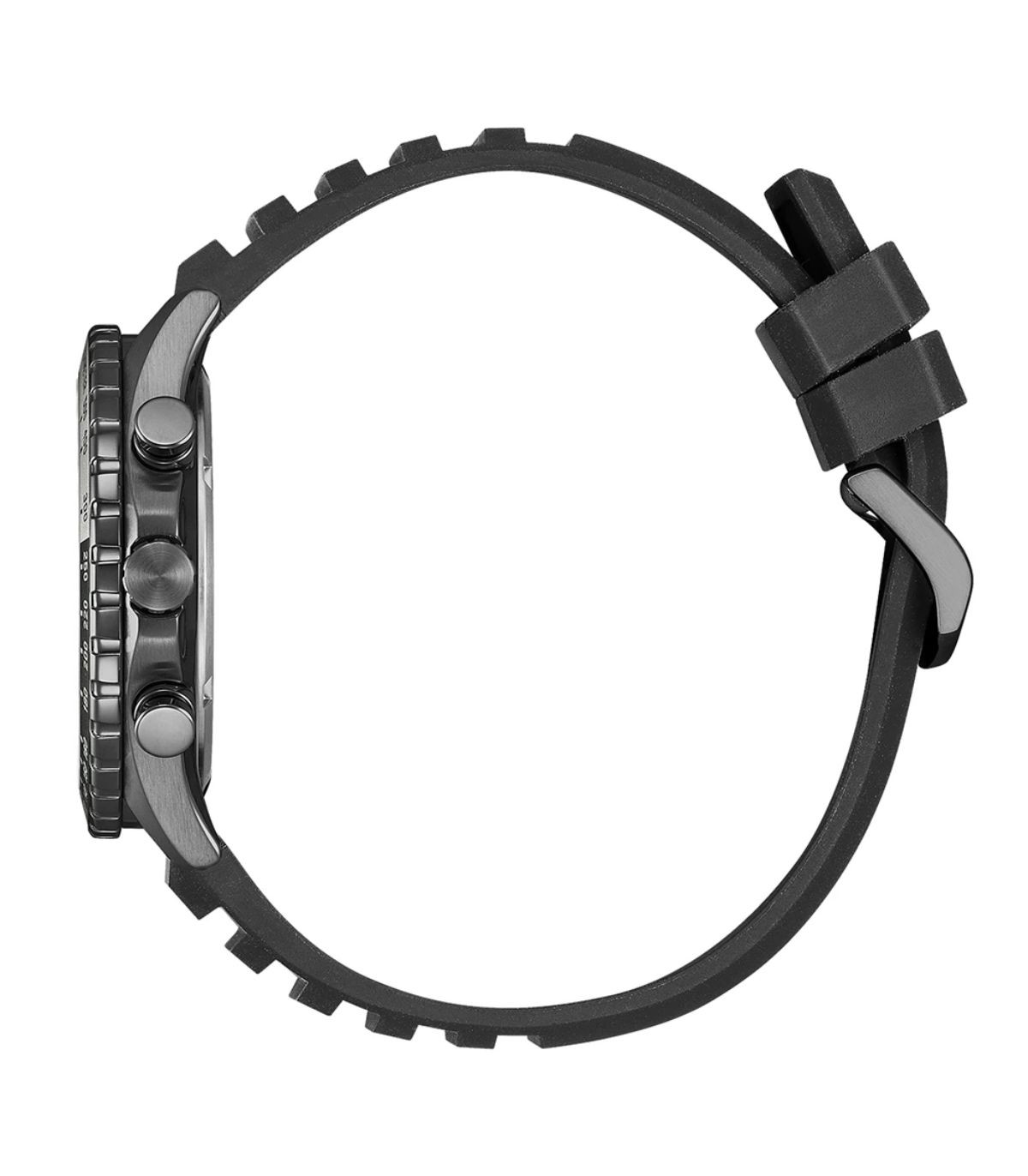 Orologio Cronografo della collezione Ore Felici. Cassa in acciaio di diametro 43 mm, quadrante con trattamento IP Grey. Cinturino in gomma di colore nero, con chiusura ad ardiglione.