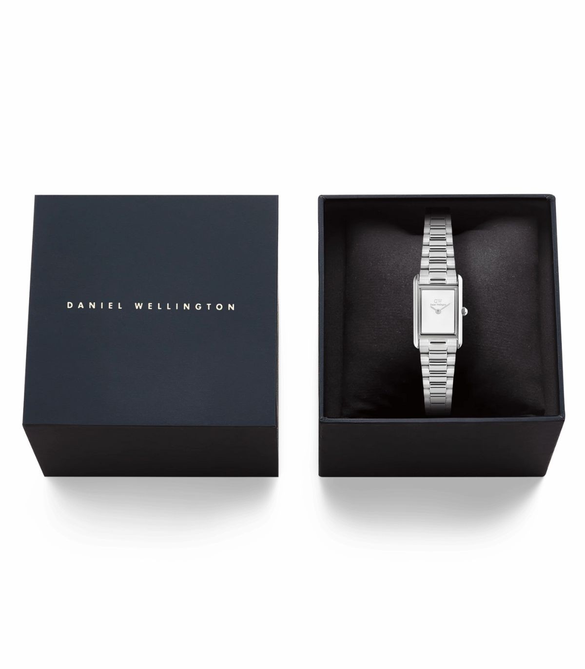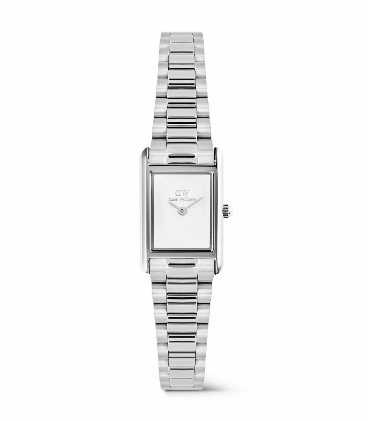 Orologio solo tempo di Daniel Wellington della collezione Bound Mini. Cassa rettangolare da 17x25,9mm e quadrante bianco. Il bracciale realizzato in acciaio con chiusura a farfalla.