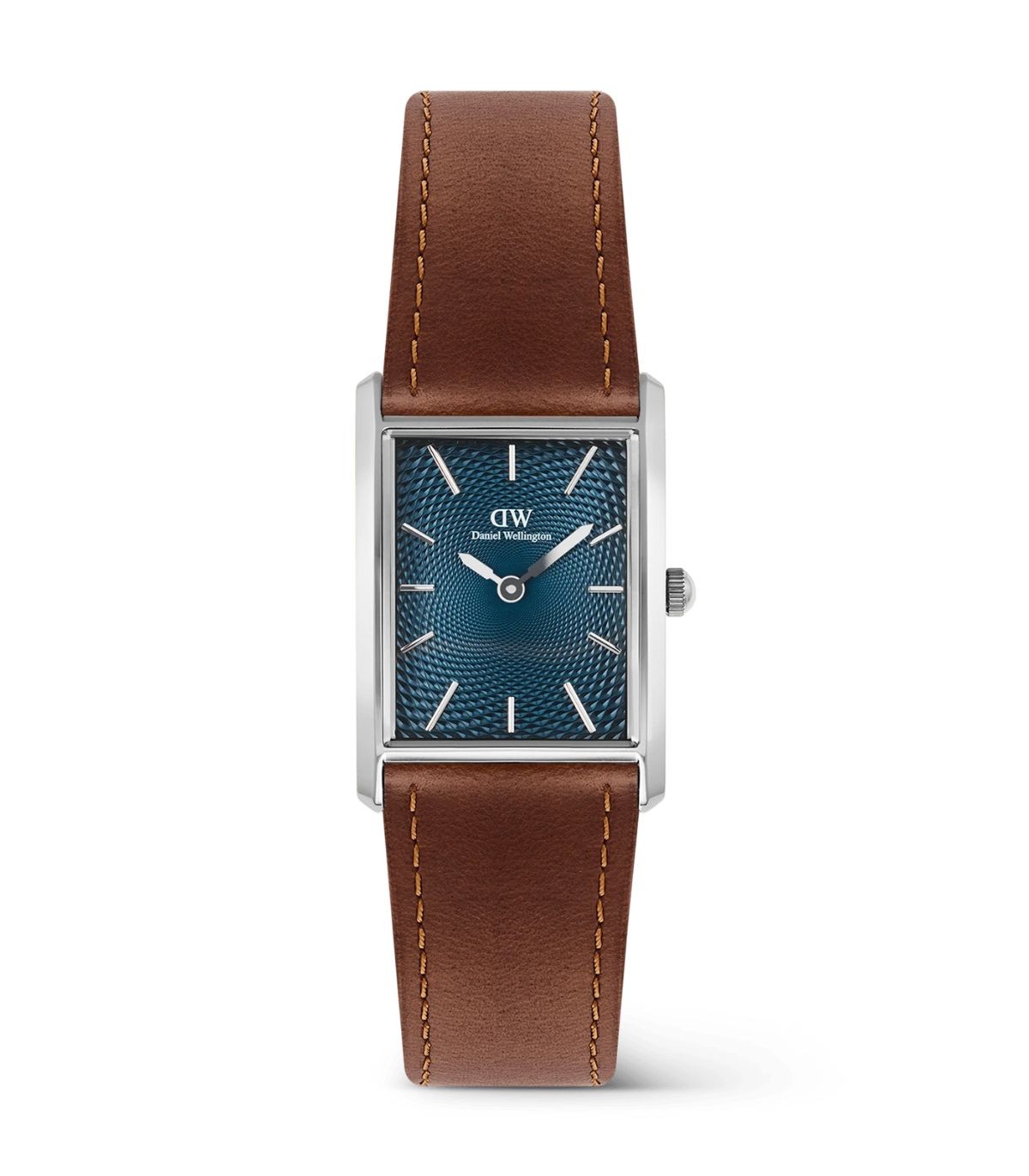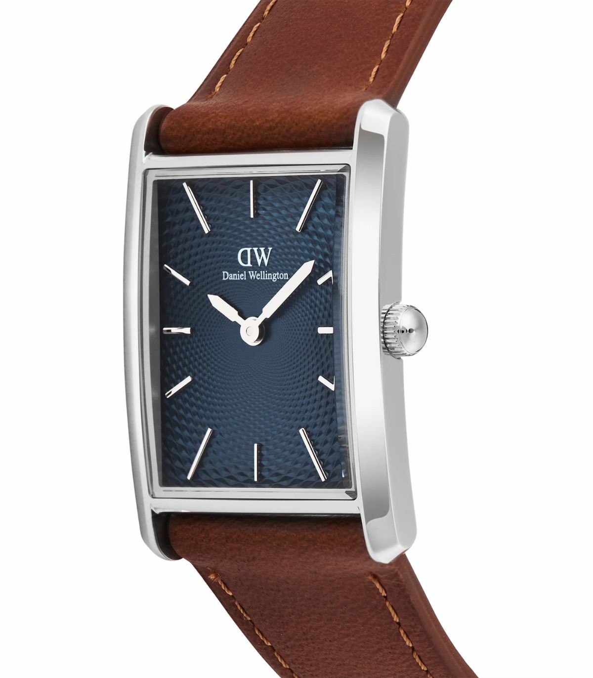 Orologio da Uomo di Daniel Wellington della collezione Bound. Cassa tonda in acciaio 24 x 35 mm e quadrante blu con lavorazione Guilloché, con indici argento. Cinturino in pelle marrone chiaro e chiusura ad ardiglione. Un preciso movimento al quarzo giapponese mantiene il tempo in modo affidabile