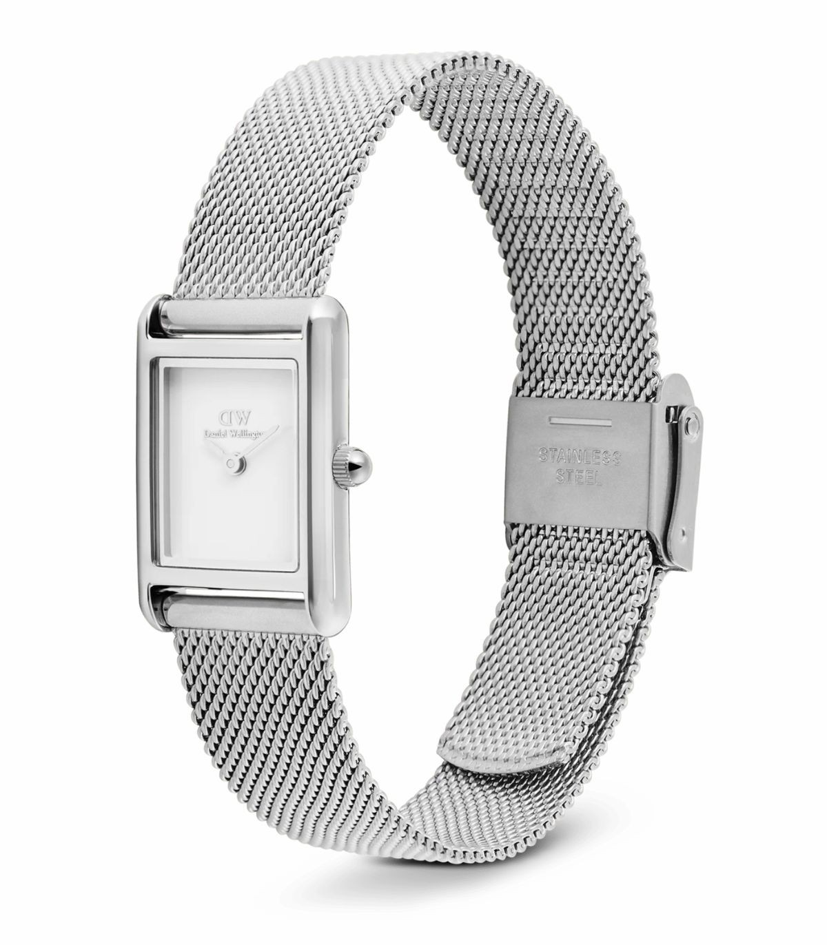 Orologio solo tempo di Daniel Wellington della collezione Bound Mini. Cassa rettangolare da 17x25,9mm e quadrante bianco. Il bracciale in maglia metallica realizzato in acciaio per un look moderno e disinvolto.