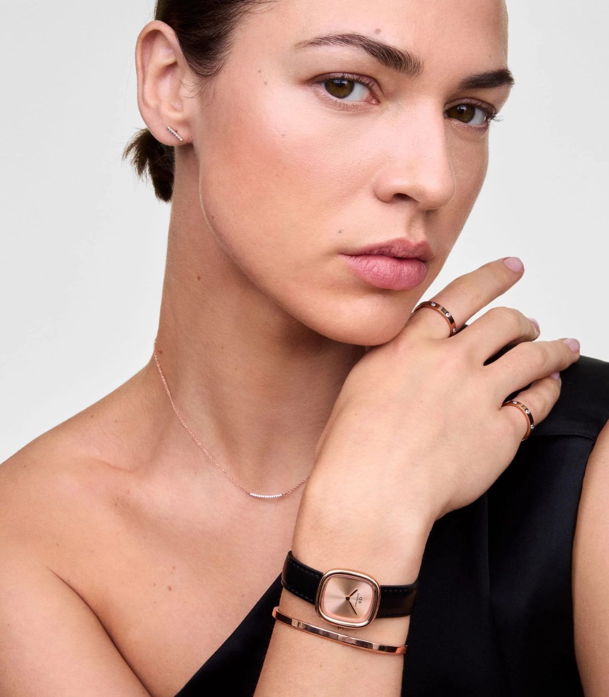 Questo modello reinterpreta un'eleganza senza tempo con un design rinnovato della cassa e un lussuoso cinturino in pelle.