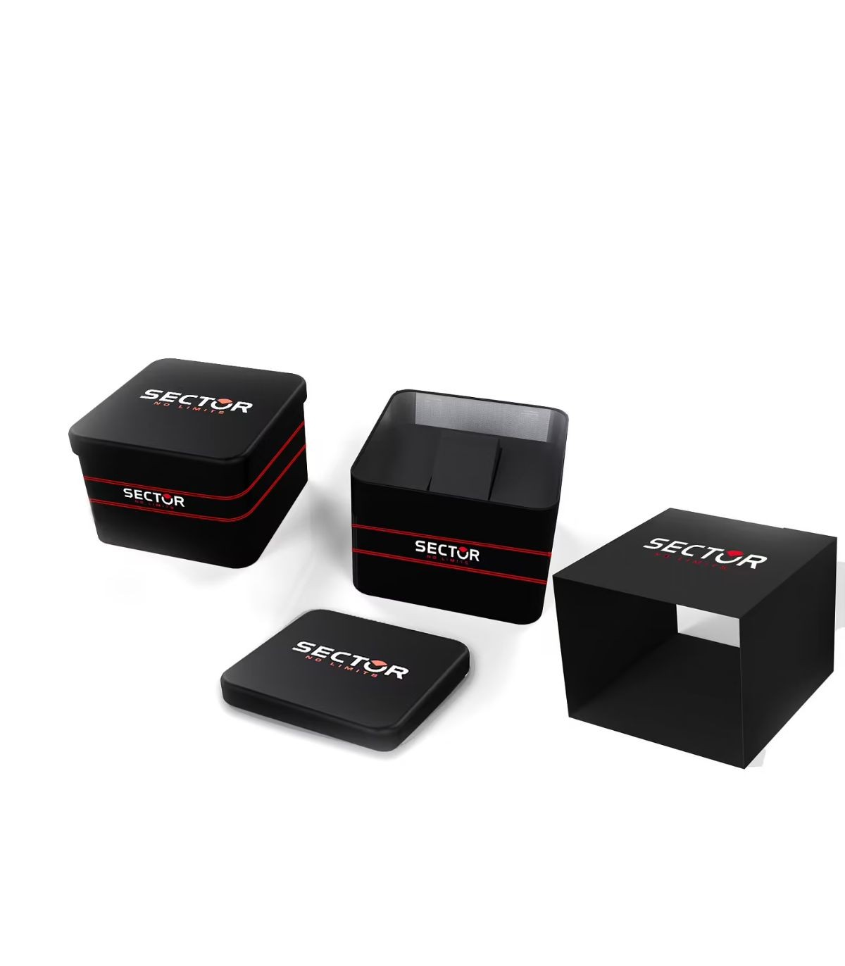 Orologio Automatico da uomo della collezione Sector 230. Cassa in acciaio da 43 mm con rifiniture rosé e quadrante nero. Cinturino in acciaio color argento con fibbia diver c, chiusura pulsanti e blocco di sicurezza.