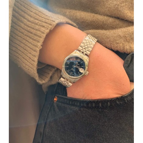 Gift Box Philp Watch Caribe con due orologi: Orologio solo tempo uomo e donna con cassa acciaio e quadrante blu con datario. Misura cassa 39 mm e 31 mm.